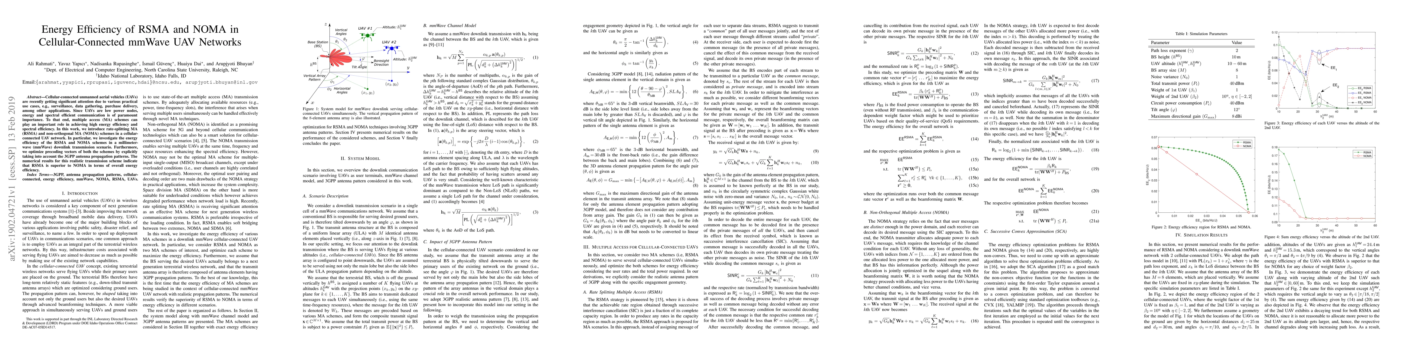This paper investigates the energy efficiency of rate-splitting MA (RSMA) and non-orthogonal MA (NOMA) schemes in cellular-connected mmWave UAV networks, finding RSMA to be superior in terms of overall energy efficiency.