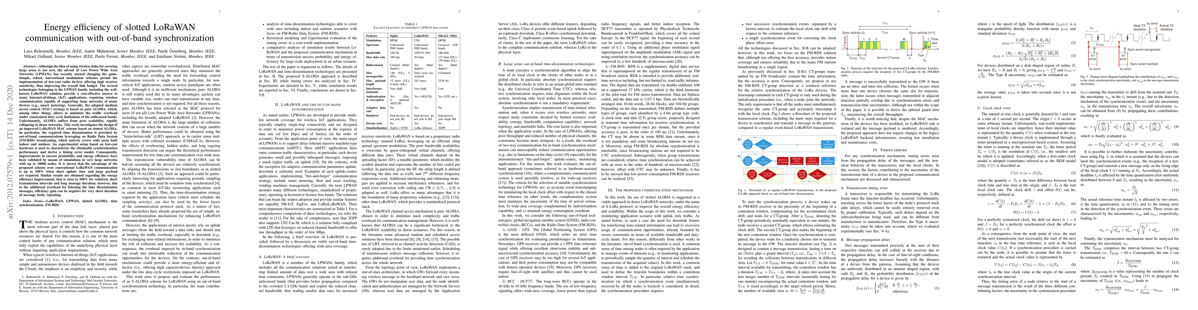 This paper proposes an improved LoRaWAN MAC scheme using slotted ALOHA with out-of-band synchronization via FM-RDS broadcasting. Experimental and simulation results show significant improvements in success probability, energy efficiency, and scalability for large networks, especially under short update times and long message durations.