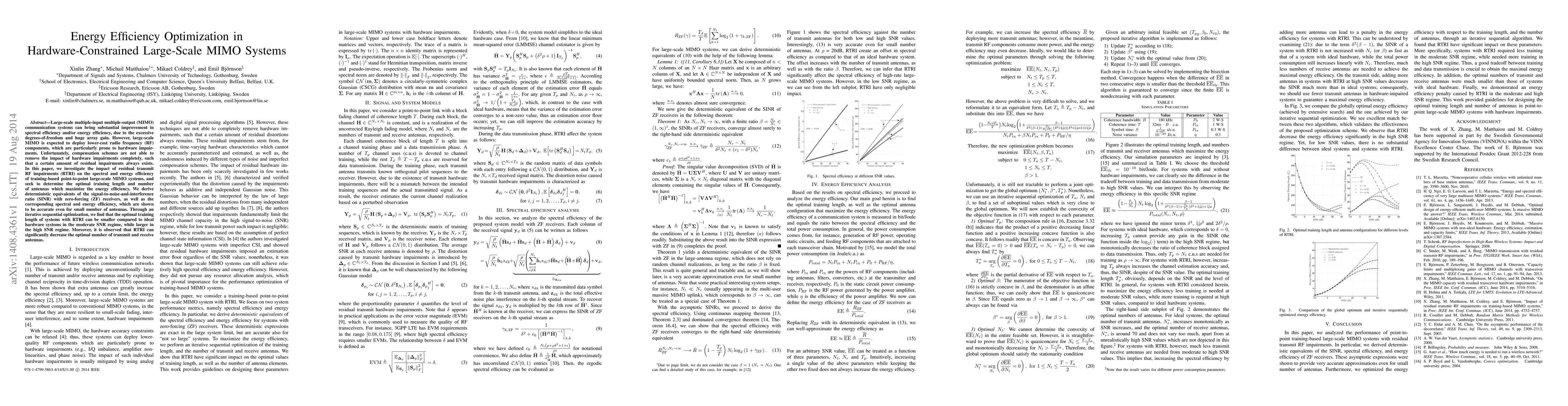 This paper explores the impact of residual transmit RF impairments on the spectral and energy efficiency of large-scale MIMO systems, determining the optimal training length and antenna count to maximize energy efficiency. The study finds that optimal training length varies with SNR, and residual impairments significantly reduce the optimal number of antennas.
