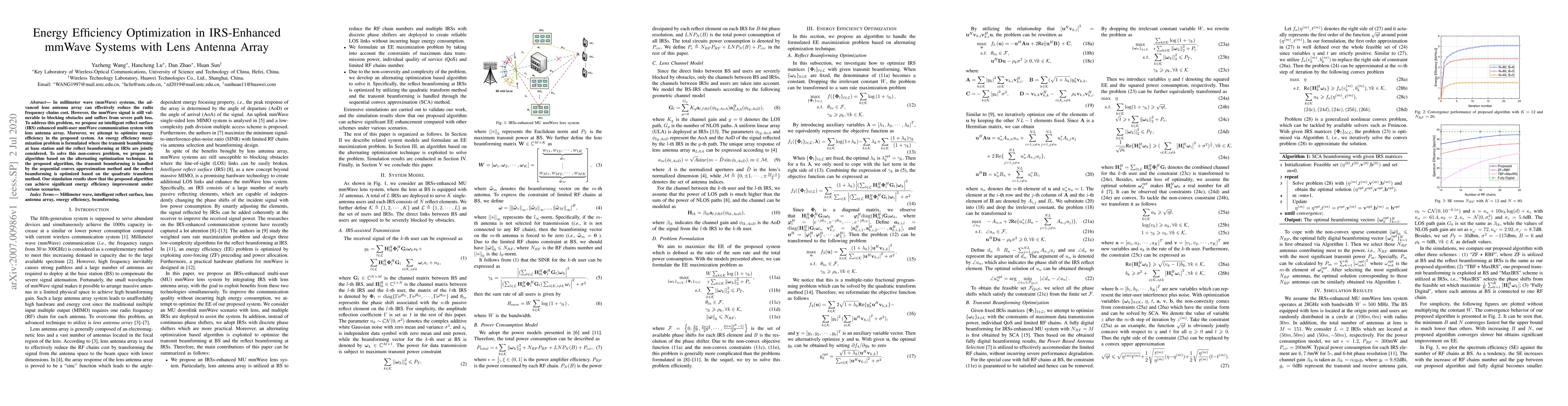 This paper proposes an IRS-enhanced mmWave system with lens antenna arrays to optimize energy efficiency, addressing mmWave's vulnerability to obstacles and path loss. An algorithm based on alternating optimization maximizes energy efficiency by jointly optimizing transmit and reflect beamforming, achieving significant improvements in simulations.