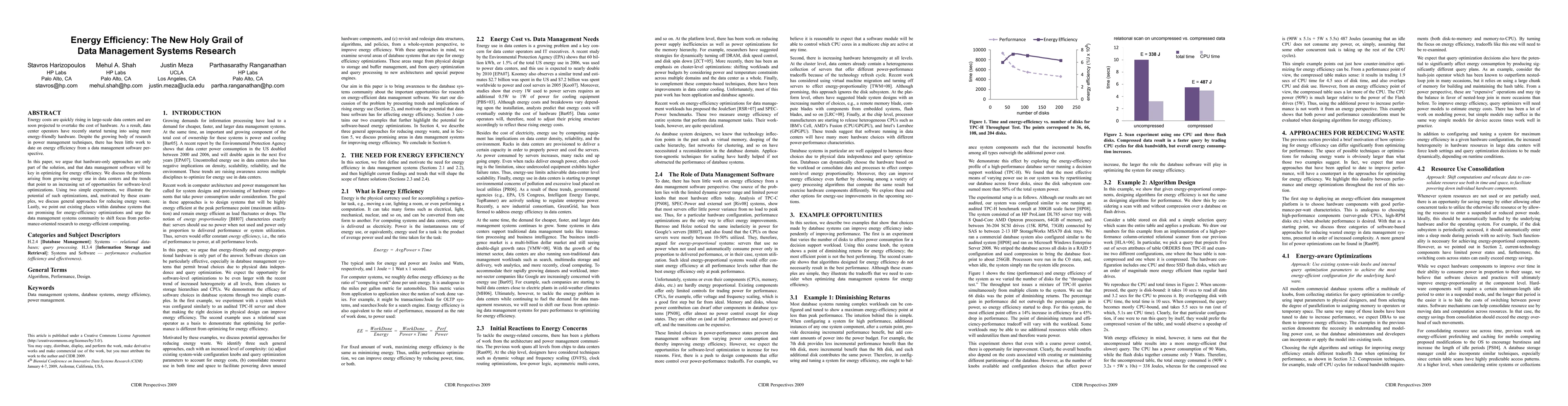 This paper argues that while hardware improvements are crucial, data management software must also be optimized for energy efficiency in data centers to address rising energy costs. It highlights the potential of software-level optimizations and calls for a shift in research focus from performance to energy-efficient computing.