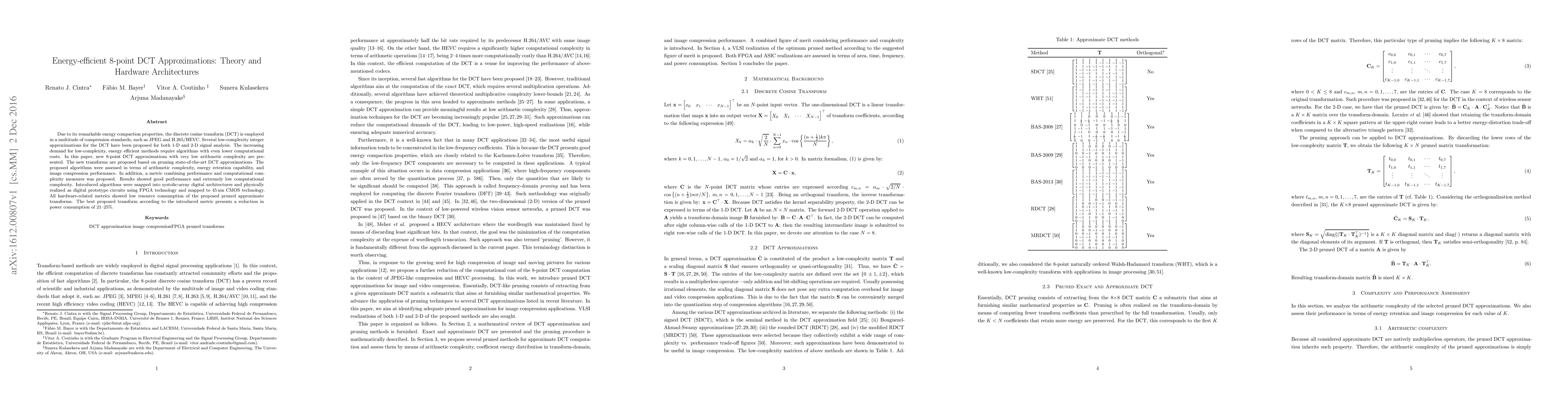 This paper presents new low-complexity 8-point DCT approximations designed for energy-efficient applications, achieving significant reductions in computational costs while maintaining good compression performance. The algorithms were implemented in systolic-array digital architectures and demonstrated low power consumption, with a 21-25% reduction compared to existing methods.