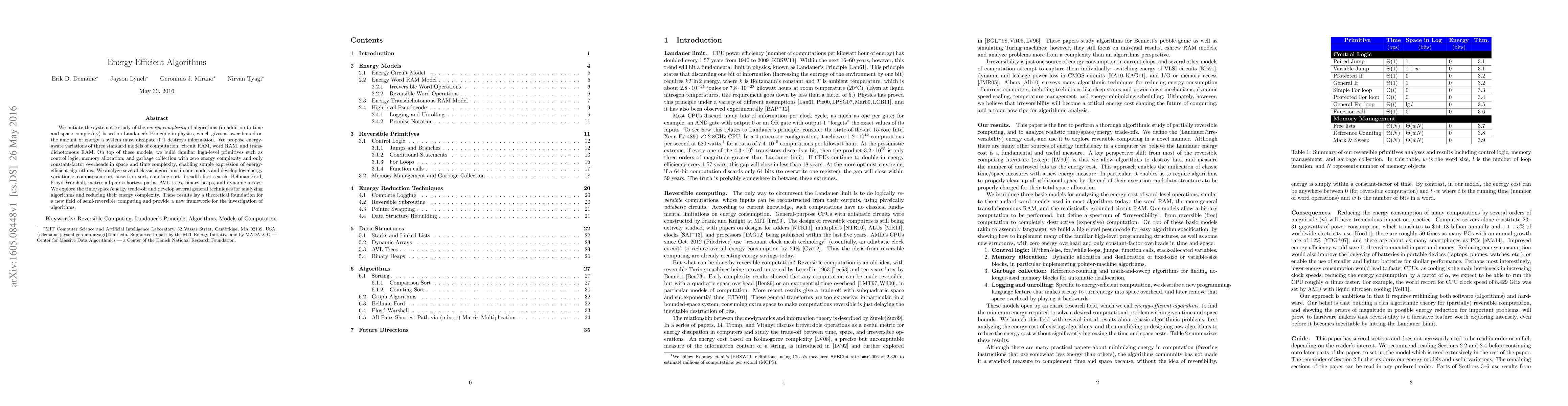 Researchers developed energy-efficient algorithms for computing by analyzing Landauer's Principle and proposing new models of computation with zero energy complexity. They created low-energy variations of classic algorithms and identified trade-offs between time, space, and energy complexities.