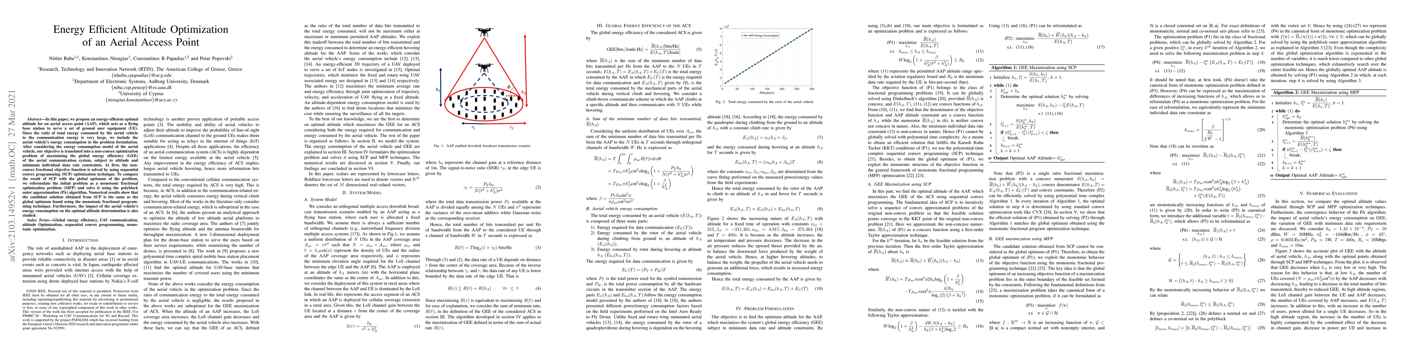 This paper proposes an energy-efficient optimal altitude for an aerial access point to minimize energy consumption while maintaining individual data rates, with results showing that sequential convex programming yields the same global optimum as a monotonic fractional optimization technique.