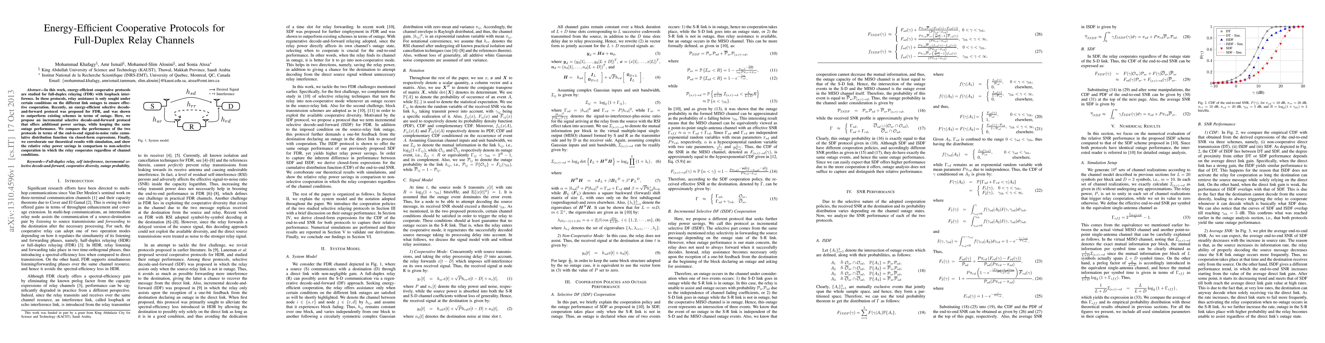 This paper proposes an incremental selective decode-and-forward protocol for energy-efficient cooperative full-duplex relaying, achieving better power savings while maintaining outage performance compared to existing selective protocols. Theoretical and simulation results demonstrate significant relay power savings.