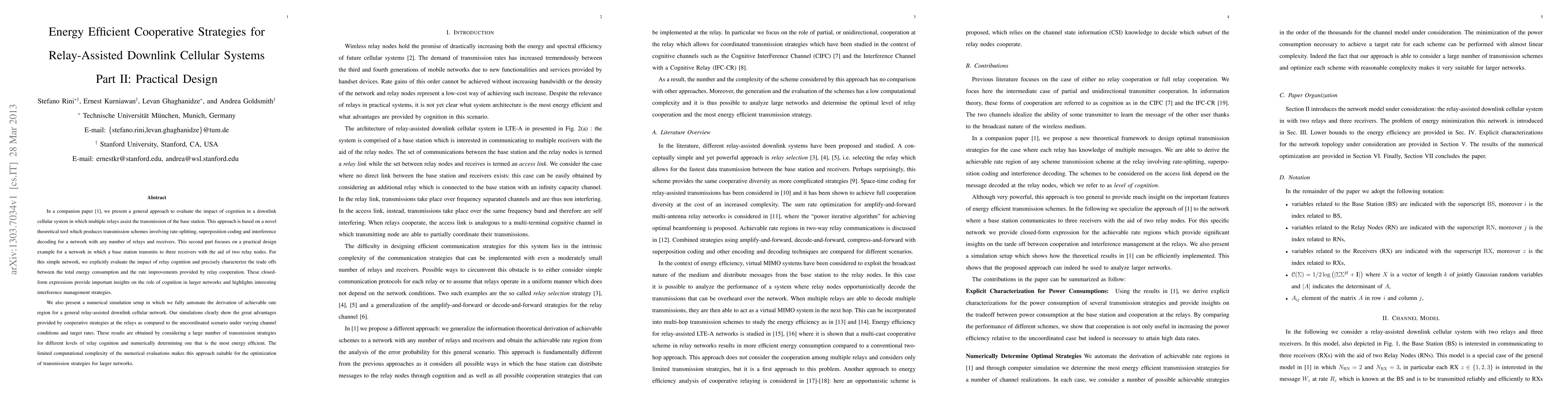 This paper presents a practical design for a relay-assisted downlink cellular system with two relays and three receivers, evaluating the energy efficiency of cooperative strategies. It provides closed-form expressions to characterize the trade-offs between energy consumption and rate improvements, and demonstrates significant benefits through numerical simulations.