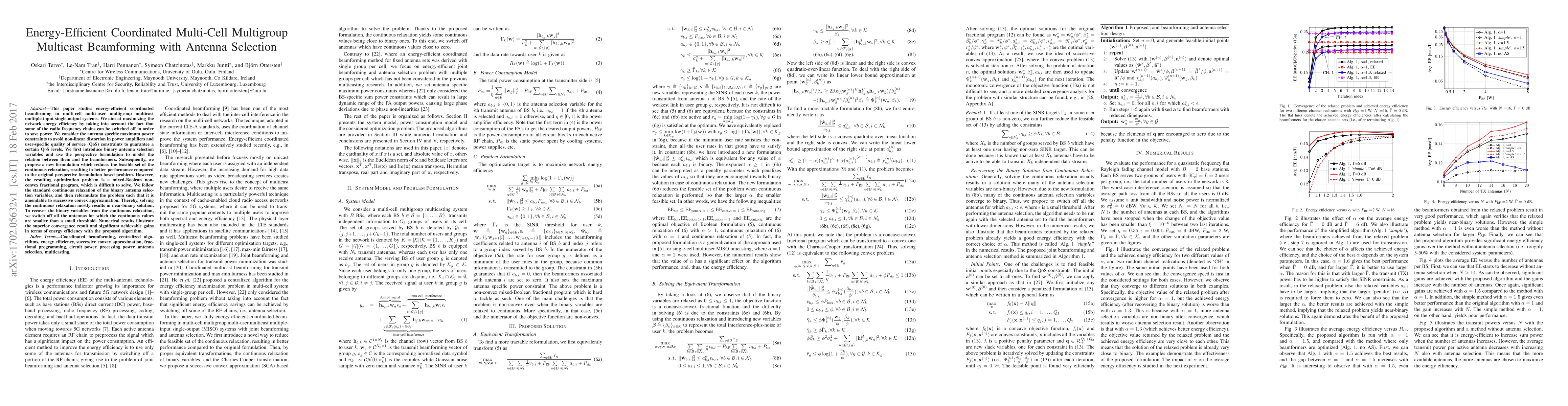 This paper studies energy-efficient coordinated beamforming in multi-cell multi-user multigroup multicast multiple-input single-output systems. We aim at maximizing the network energy efficiency by taking into account the fact that some of the radio frequency chains can be switched off in order to save power. We consider the antenna specific maximum power constraints to avoid non-linear distortion in power amplifiers and user-specific quality of service (QoS) constraints to guarantee a certain QoS levels. We first introduce binary antenna selection variables and use the perspective formulation to model the relation between them and the beamformers. Subsequently, we propose a new formulation which reduces the feasible set of the continuous relaxation, resulting in better performance compared to the original perspective formulation based problem. However, the resulting optimization problem is a mixed-Boolean non-convex fractional program, which is difficult to solve. We follow the standard continuous relaxation of the binary antenna selection variables, and then reformulate the problem such that it is amendable to successive convex approximation. Thereby, solving the continuous relaxation mostly results in near-binary solution. To recover the binary variables from the continuous relaxation, we switch off all the antennas for which the continuous values are smaller than a small threshold. Numerical results illustrate the superior convergence result and significant achievable gains in terms of energy efficiency with the proposed algorithm.