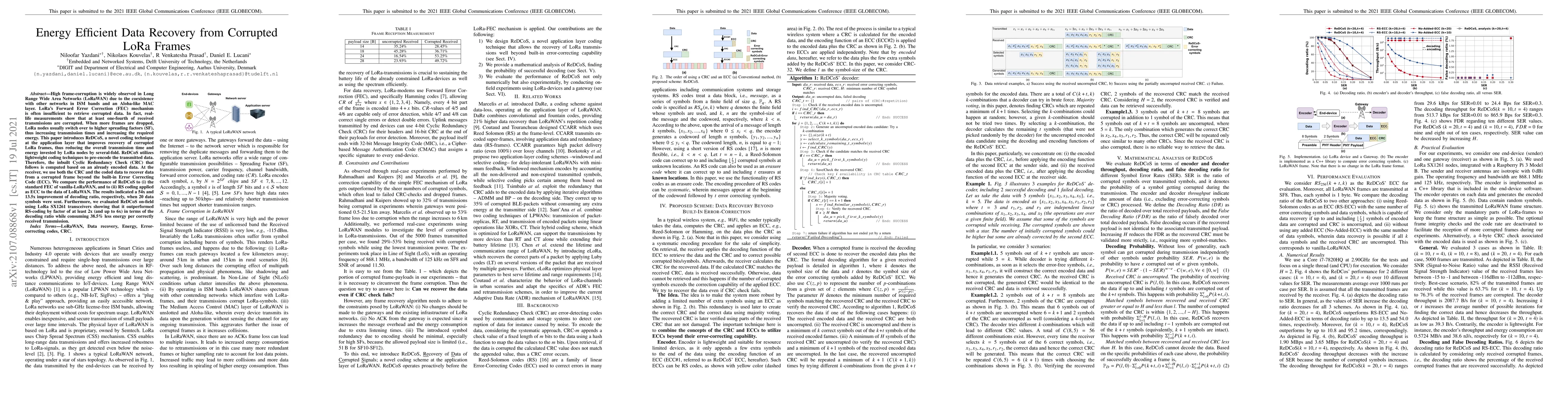 High frame-corruption is widely observed in Long Range Wide Area Networks (LoRaWAN) due to the coexistence with other networks in ISM bands and an Aloha-like MAC layer. LoRa's Forward Error Correction (FEC) mechanism is often insufficient to retrieve corrupted data. In fact, real-life measurements show that at least one-fourth of received transmissions are corrupted. When more frames are dropped, LoRa nodes usually switch over to higher spreading factors (SF), thus increasing transmission times and increasing the required energy. This paper introduces ReDCoS, a novel coding technique at the application layer that improves recovery of corrupted LoRa frames, thus reducing the overall transmission time and energy invested by LoRa nodes by several-fold. ReDCoS utilizes lightweight coding techniques to pre-encode the transmitted data. Therefore, the inbuilt Cyclic Redundancy Check (CRC) that follows is computed based on an already encoded data. At the receiver, we use both the CRC and the coded data to recover data from a corrupted frame beyond the built-in Error Correcting Code (ECC). We compare the performance of ReDCoS to (I) the standard FEC of vanilla-LoRaWAN, and to (ii) RS coding applied as ECC to the data of LoRaWAN. The results indicated a 54x and 13.5x improvement of decoding ratio, respectively, when 20 data symbols were sent. Furthermore, we evaluated ReDCoS on-field using LoRa SX1261 transceivers showing that it outperformed RS-coding by factor of at least 2x (and up to 6x) in terms of the decoding ratio while consuming 38.5% less energy per correctly received transmission.