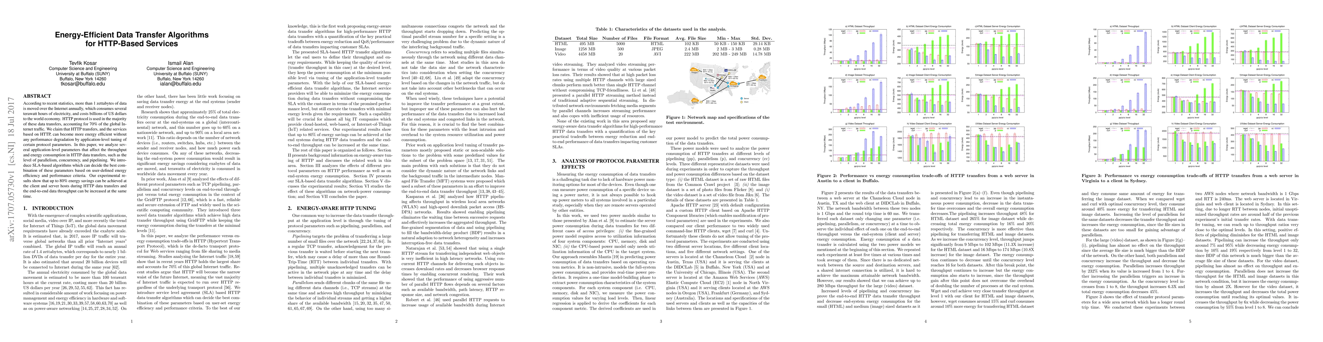 According to recent statistics, more than 1 zettabytes of data is moved over the Internet annually, which consumes several terawatt hours of electricity, and costs billions of US dollars to the world economy. HTTP protocol is used in the majority of these data transfers, accounting for 70% of the global Internet traffic. We claim that HTTP transfers, and the services based on HTTP, can become more energy efficient without any performance degradation by application-level tuning of certain protocol parameters. In this paper, we analyze several application-level parameters that affect the throughput and energy consumption in HTTP data transfers, such as the level of parallelism, concurrency, and pipelining. We introduce SLA-based algorithms which can decide the best combination of these parameters based on user-defined energy efficiency and performance criteria. Our experimental results show that up to 80% energy savings can be achieved at the client and server hosts during HTTP data transfers and the end-to-end data throughput can be increased at the same time.