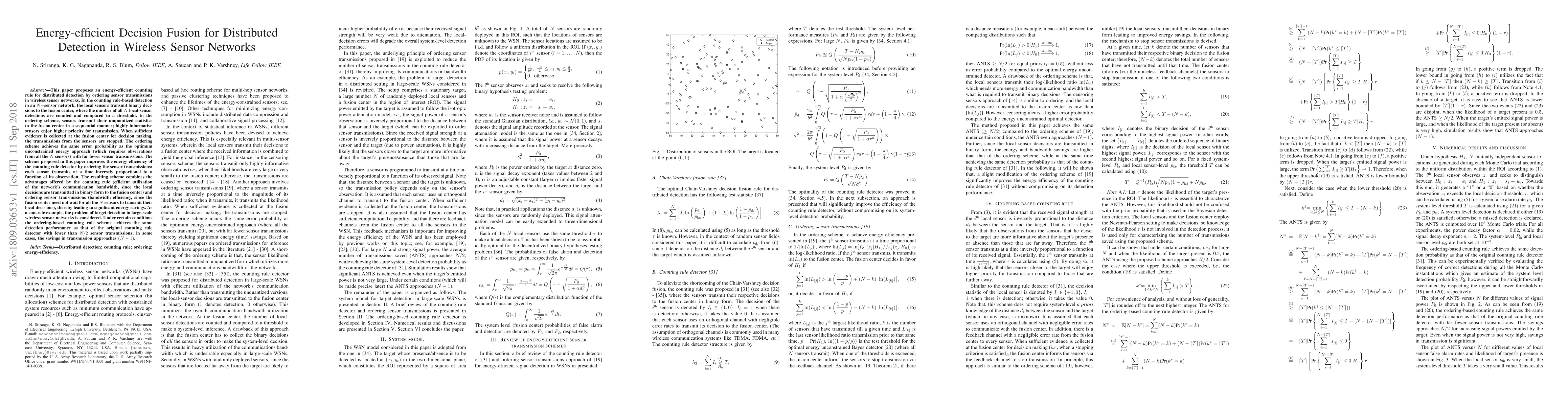 This paper proposes an energy-efficient counting rule for distributed detection in wireless sensor networks, utilizing an ordering scheme where sensors transmit in a prioritized manner based on their information. The scheme significantly reduces energy consumption by minimizing the number of transmissions while maintaining detection performance.