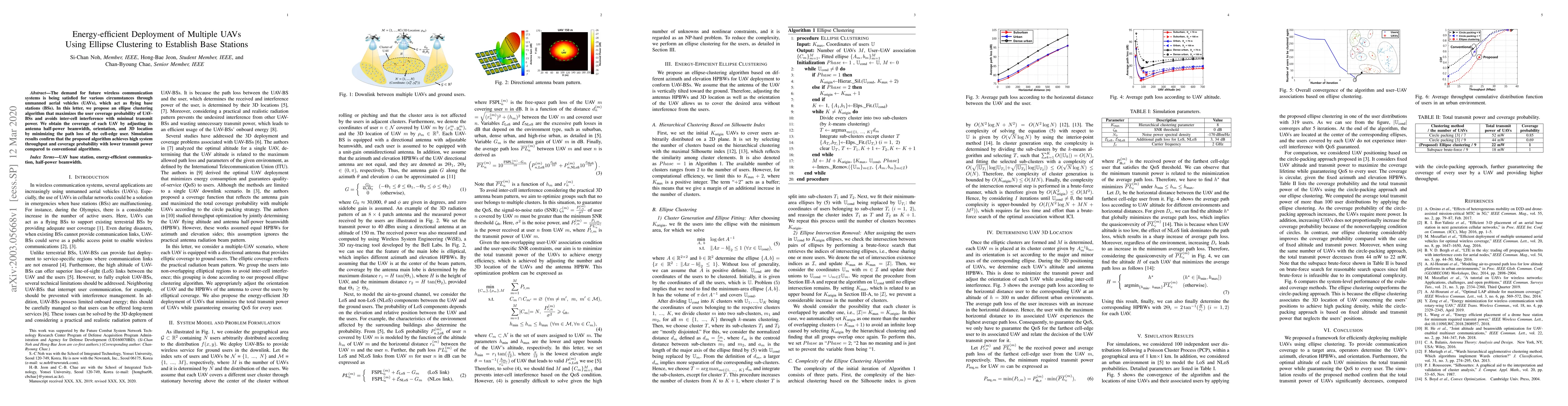 This paper proposes an ellipse clustering algorithm for deploying multiple UAVs as base stations to maximize user coverage and minimize inter-cell interference with lower transmit power. Simulation results show improved system throughput and coverage probability compared to conventional methods.