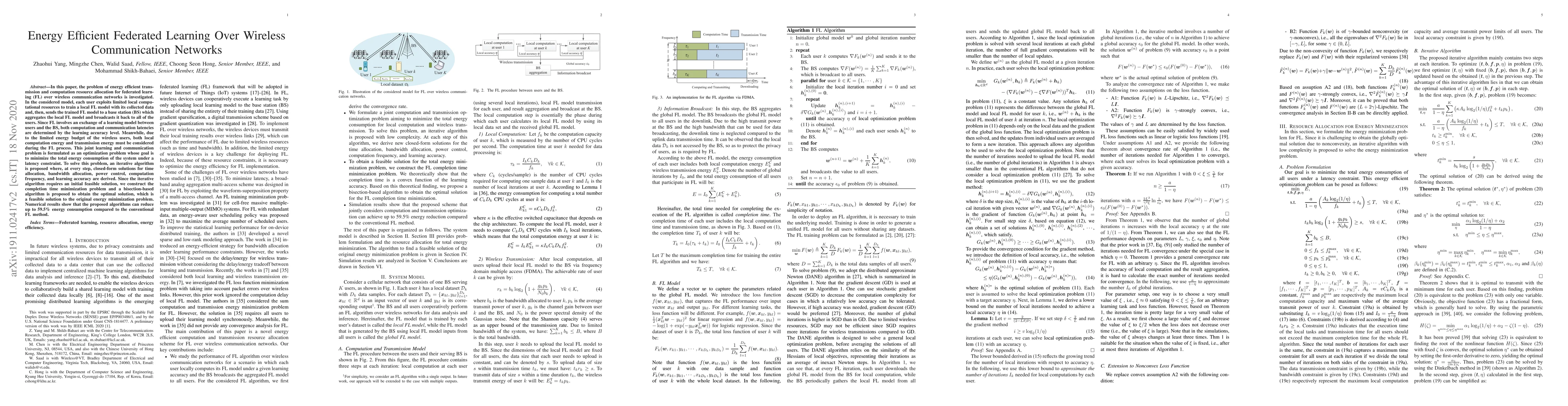 This paper investigates energy efficient resource allocation for federated learning over wireless networks, focusing on minimizing total energy consumption while meeting latency constraints. An iterative algorithm is proposed to optimize time, bandwidth, power, and computation frequency, achieving up to 59.5% reduction in energy compared to conventional methods.