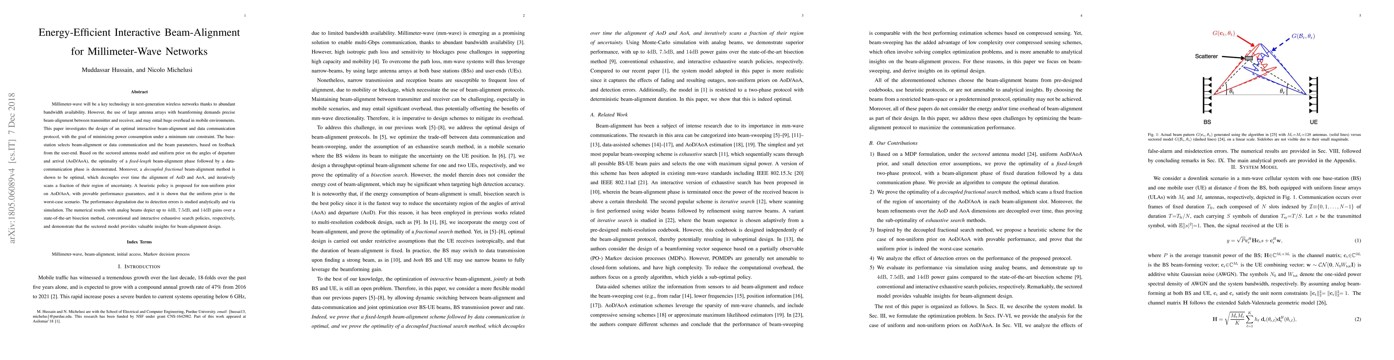 This paper proposes an energy-efficient interactive beam-alignment protocol for millimeter-wave networks, optimizing power consumption while ensuring a minimum data rate. It demonstrates a decoupled fractional beam-alignment method that iteratively scans a fraction of the uncertainty region, achieving significant gains over existing methods.