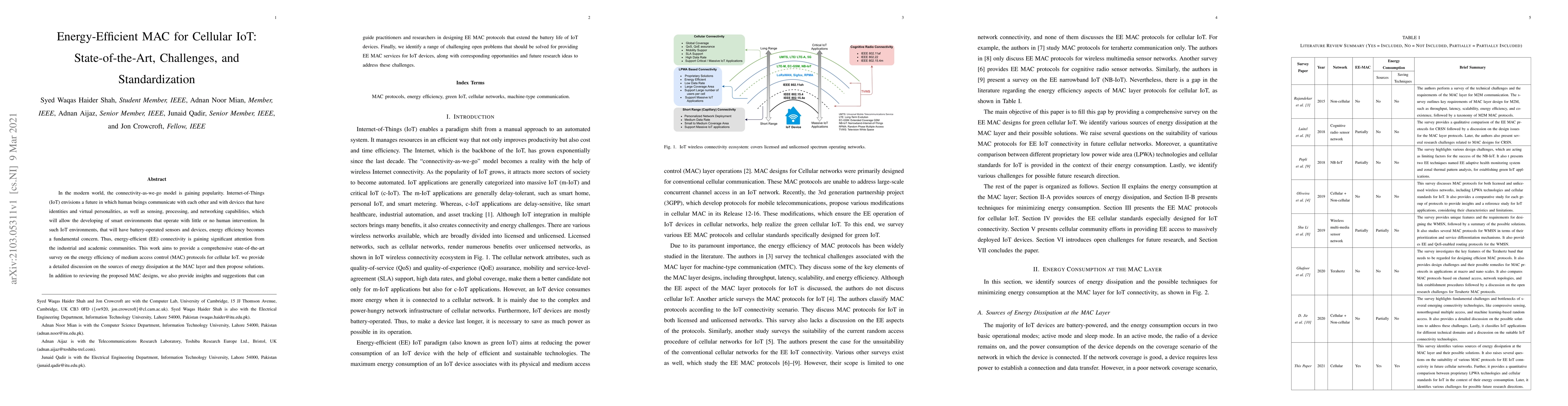 In the modern world, the connectivity-as-we-go model is gaining popularity. Internet-of-Things (IoT) envisions a future in which human beings communicate with each other and with devices that have identities and virtual personalities, as well as sensing, processing, and networking capabilities, which will allow the developing of smart environments that operate with little or no human intervention. In such IoT environments, that will have battery-operated sensors and devices, energy efficiency becomes a fundamental concern. Thus, energy-efficient (EE) connectivity is gaining significant attention from the industrial and academic communities. This work aims to provide a comprehensive state-of-the-art survey on the energy efficiency of medium access control (MAC) protocols for cellular IoT. we provide a detailed discussion on the sources of energy dissipation at the MAC layer and then propose solutions. In addition to reviewing the proposed MAC designs, we also provide insights and suggestions that can guide practitioners and researchers in designing EE MAC protocols that extend the battery life of IoT devices. Finally, we identify a range of challenging open problems that should be solved for providing EE MAC services for IoT devices, along with corresponding opportunities and future research ideas to address these challenges.