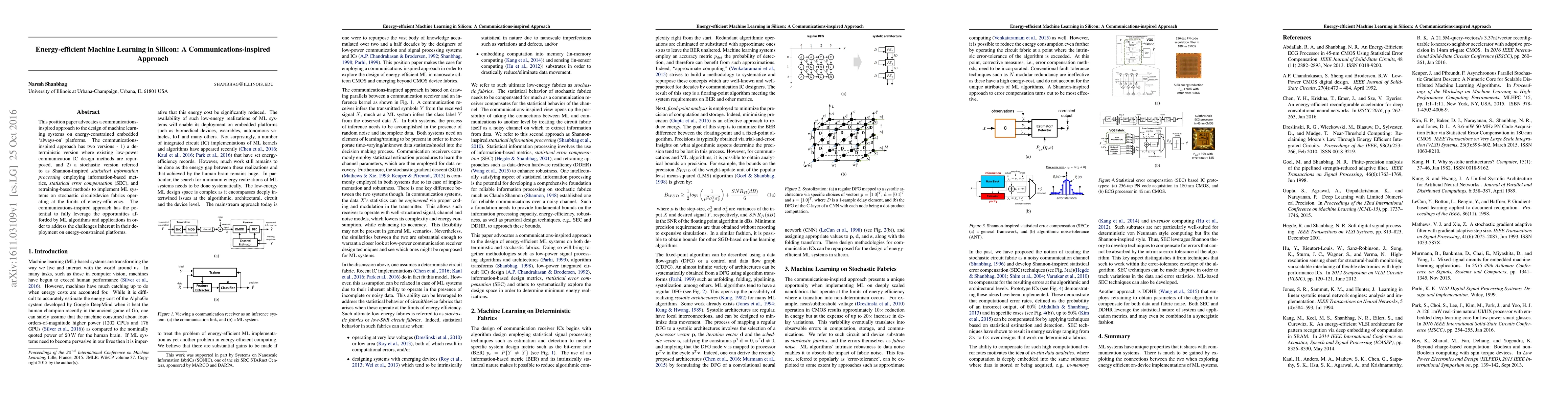 A new approach, inspired by communications design methods, aims to improve energy efficiency in machine learning systems on low-power devices. This approach leverages information-based metrics and statistical techniques to optimize the performance of ML systems on energy-constrained platforms.