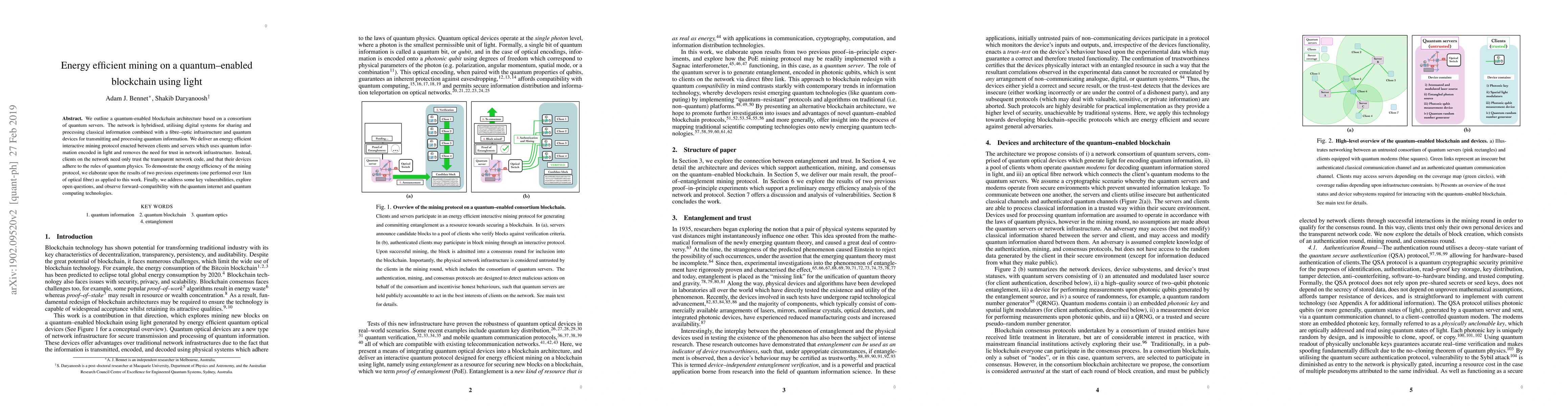 Researchers propose a quantum-enabled blockchain that leverages light to achieve energy-efficient mining, eliminating trust in network infrastructure in favor of quantum physics rules.