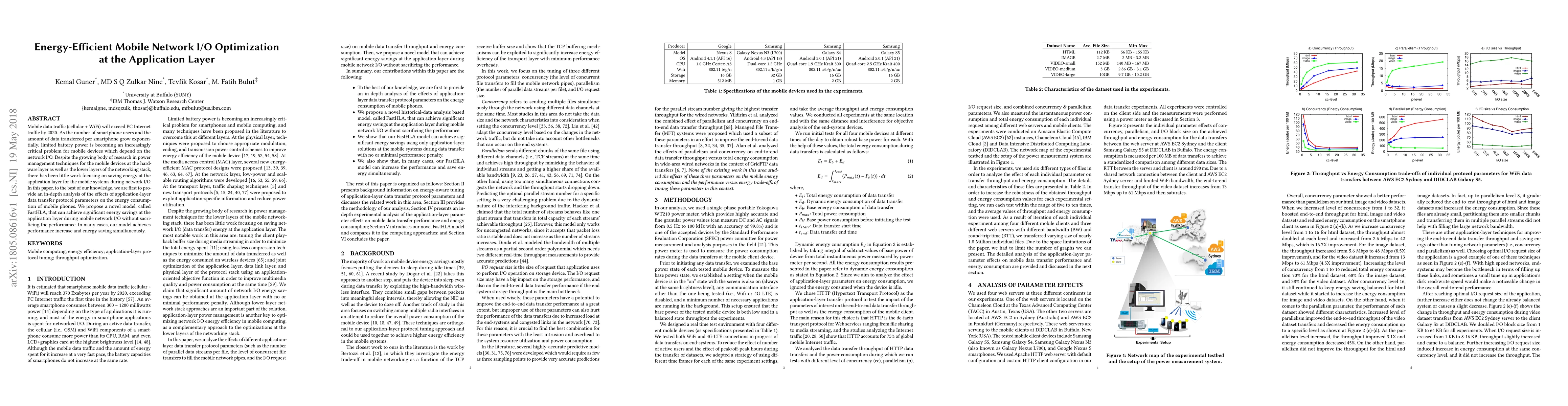 Mobile data traffic (cellular + WiFi) will exceed PC Internet traffic by 2020. As the number of smartphone users and the amount of data transferred per smartphone grow exponentially, limited battery power is becoming an increasingly critical problem for mobile devices which depend on the network I/O. Despite the growing body of research in power management techniques for the mobile devices at the hardware layer as well as the lower layers of the networking stack, there has been little work focusing on saving energy at the application layer for the mobile systems during network I/O. In this paper, to the best of our knowledge, we are first to provide an in-depth analysis of the effects of application-layer data transfer protocol parameters on the energy consumption of mobile phones. We propose a novel model, called FastHLA, that can achieve significant energy savings at the application layer during mobile network I/O without sacrificing the performance. In many cases, our model achieves performance increase and energy saving simultaneously.