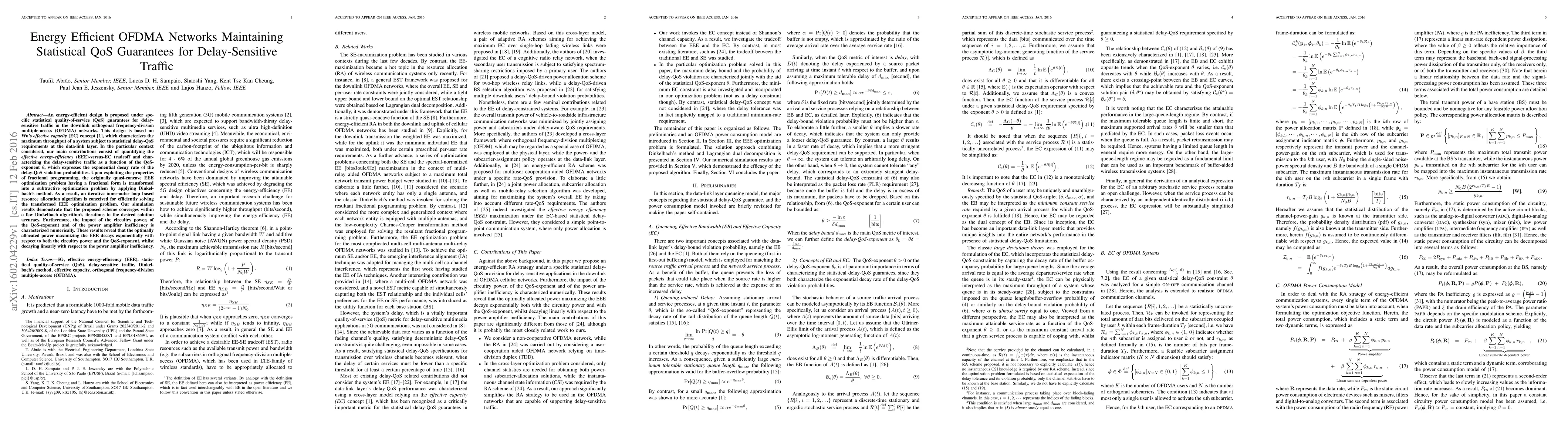 This paper proposes an energy-efficient design for OFDMA networks to maintain statistical QoS guarantees for delay-sensitive traffic, leveraging Wu's effective capacity concept. It introduces an iterative resource allocation algorithm to optimize effective energy-efficiency, demonstrating convergence and analyzing the impact of circuitry power, QoS-exponent, and power amplifier inefficiency on optimal power allocation.