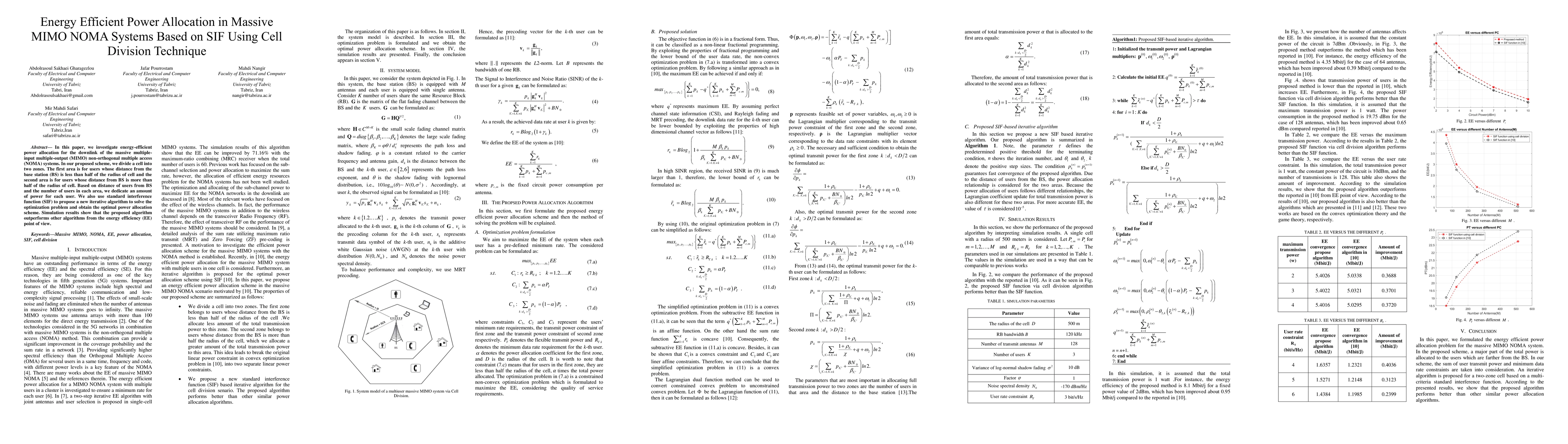 This paper proposes an energy-efficient power allocation scheme for massive MIMO NOMA systems using a cell division technique. The scheme divides the cell into two zones, optimizing power allocation based on user distance from the base station and employing an iterative algorithm based on the standard interference function (SIF) to achieve optimal results, outperforming other methods in terms of energy efficiency.