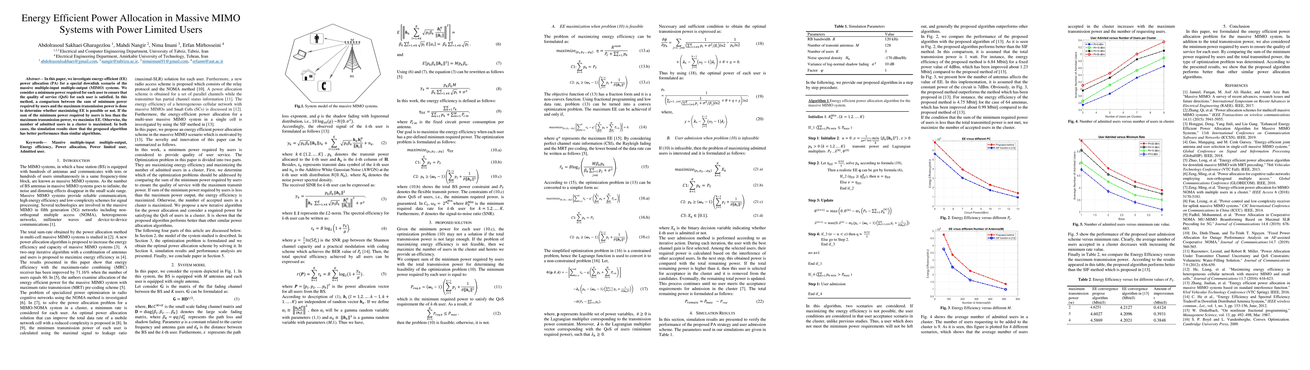 This paper proposes an energy-efficient power allocation method for massive MIMO systems with limited users, balancing quality of service and transmission power constraints. The approach ensures better performance than similar algorithms through simulation results.