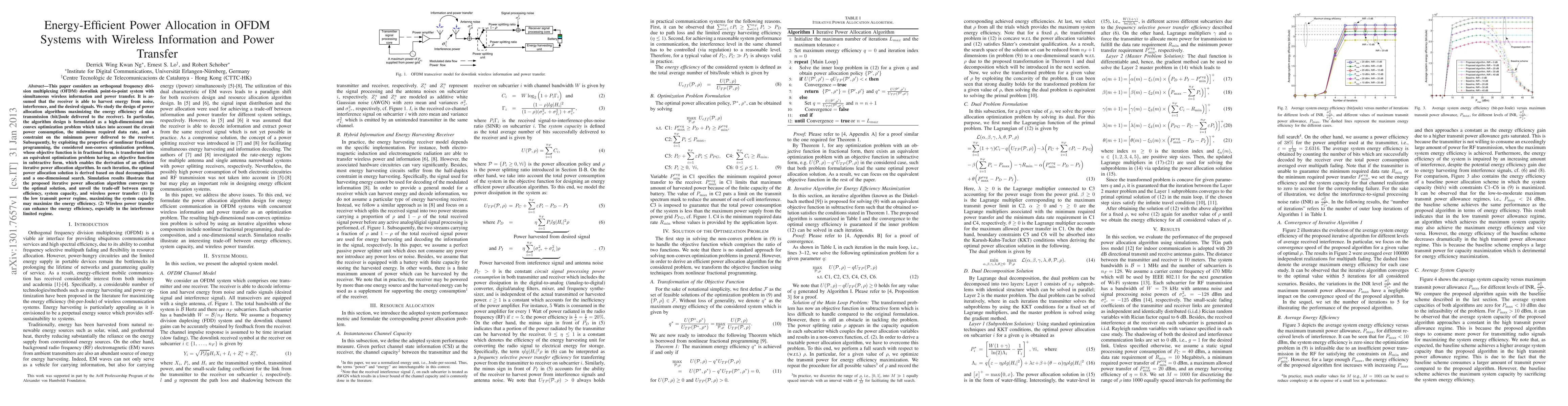 The paper presents an efficient iterative power allocation algorithm for energy-efficient OFDM systems with wireless information and power transfer, transforming a fractional-form objective function into a subtractive-form equivalent for optimization.
