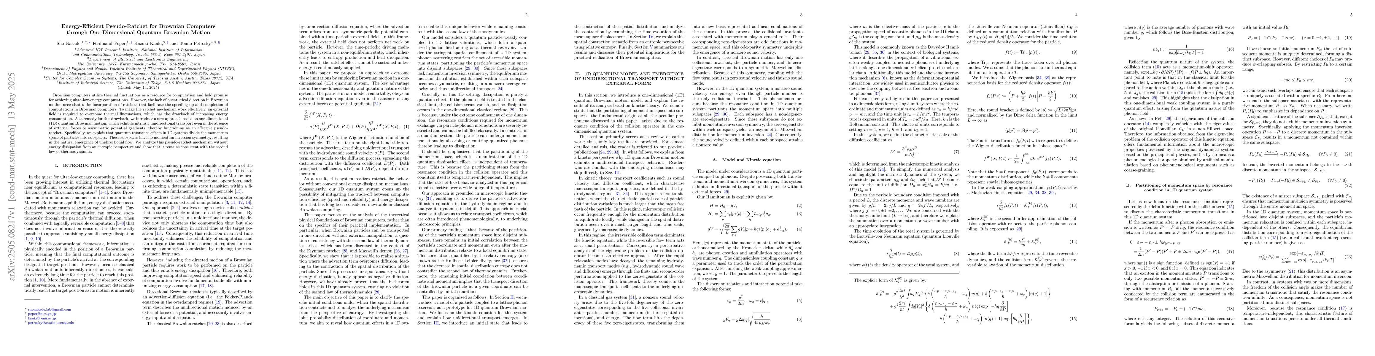 The research introduces a novel pseudo-ratchet mechanism for Brownian computers based on one-dimensional quantum Brownian motion, exploiting quantum resentance effects for unidirectional transport without external forces or asymmetric potential gradients.