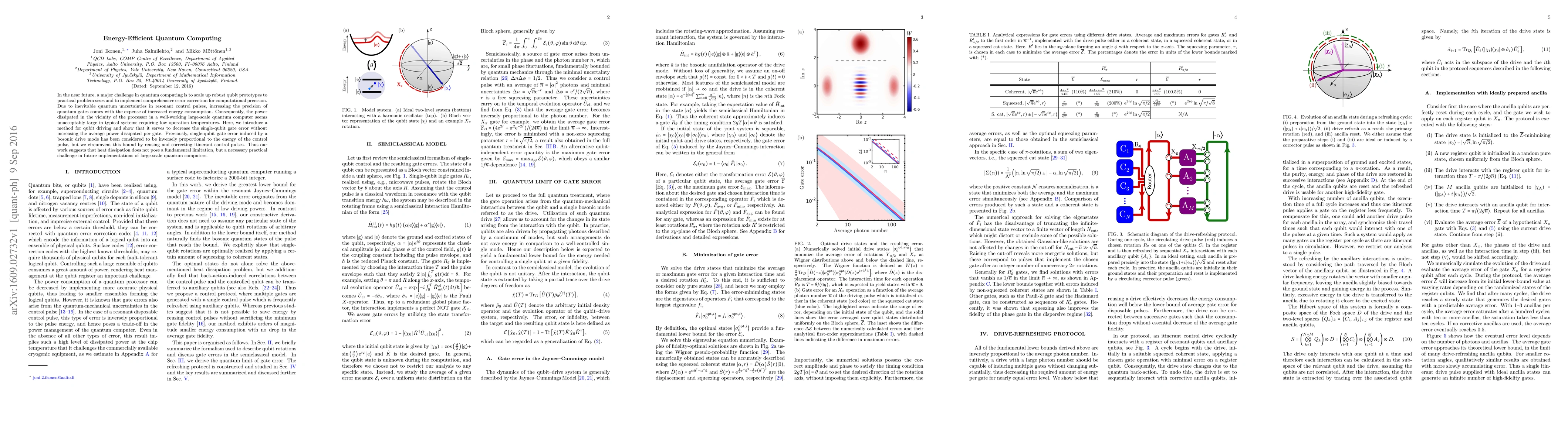 In the near future, a major challenge in quantum computing is to scale up robust qubit prototypes to practical problem sizes and to implement comprehensive error correction for computational precision. Due to inevitable quantum uncertainties in resonant control pulses, increasing the precision of quantum gates comes with the expense of increased energy consumption. Consequently, the power dissipated in the vicinity of the processor in a well-working large-scale quantum computer seems unacceptably large in typical systems requiring low operation temperatures. Here, we introduce a method for qubit driving and show that it serves to decrease the single-qubit gate error without increasing the average power dissipated per gate. Previously, single-qubit gate error induced by a bosonic drive mode has been considered to be inversely proportional to the energy of the control pulse, but we circumvent this bound by reusing and correcting itinerant control pulses. Thus our work suggests that heat dissipation does not pose a fundamental limitation, but a necessary practical challenge in future implementations of large-scale quantum computers.