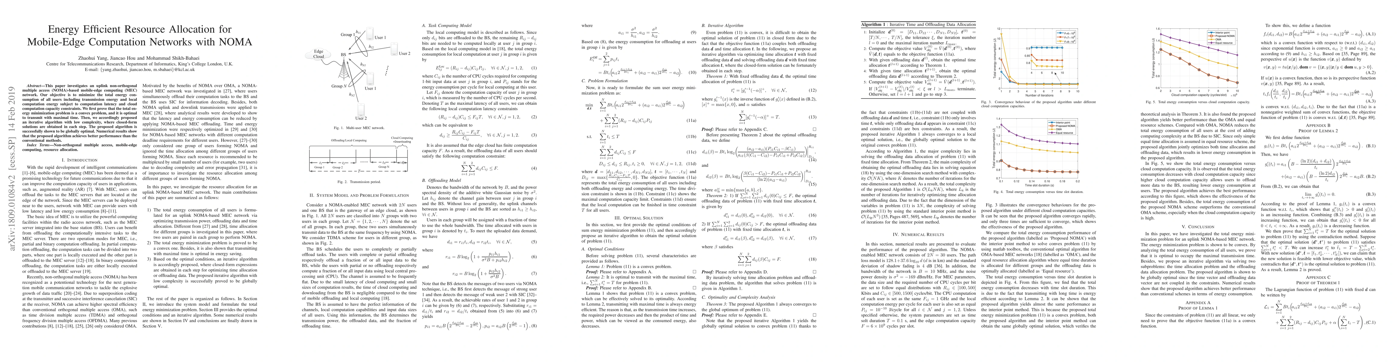 This paper optimizes energy consumption in mobile-edge computing networks with non-orthogonal multiple access (NOMA), achieving better performance than conventional methods.