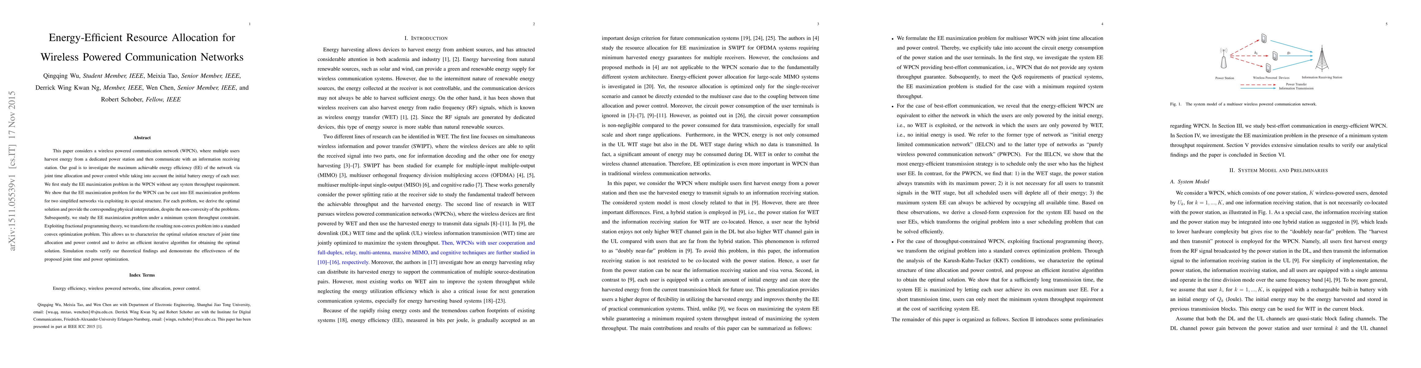 This paper explores energy efficiency in wireless powered communication networks by optimizing joint time allocation and power control, considering users' initial battery energy. It derives optimal solutions for both unconstrained and throughput-constrained scenarios, achieving efficient resource allocation through convex optimization techniques.