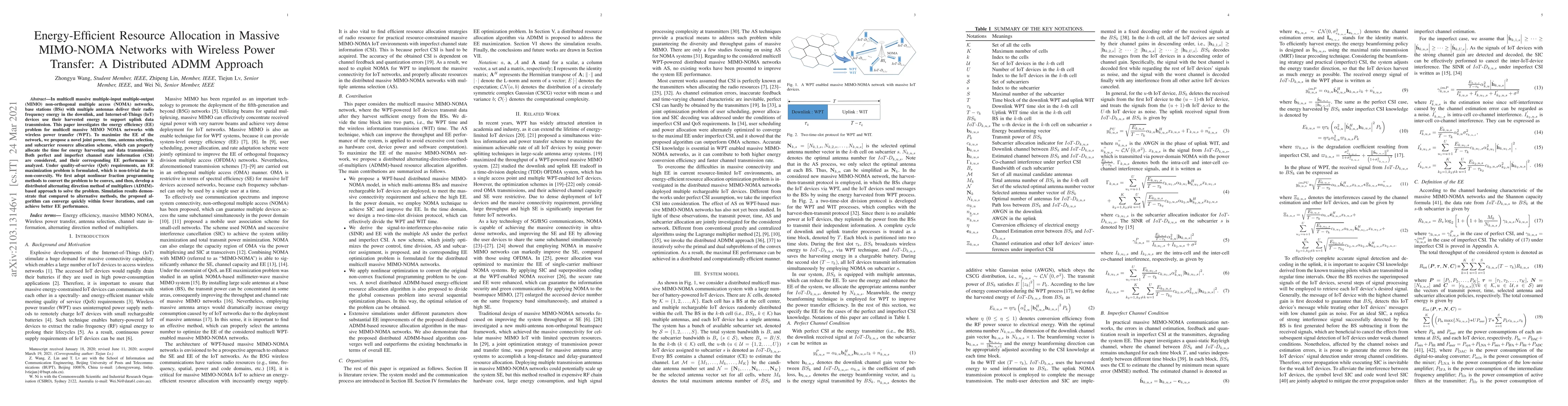 This paper proposes a distributed ADMM approach for optimizing energy-efficient resource allocation in multicell massive MIMO-NOMA networks with wireless power transfer. The method maximizes energy efficiency by jointly allocating power, time, antennas, and subcarriers, and demonstrates superior performance compared to alternative methods.