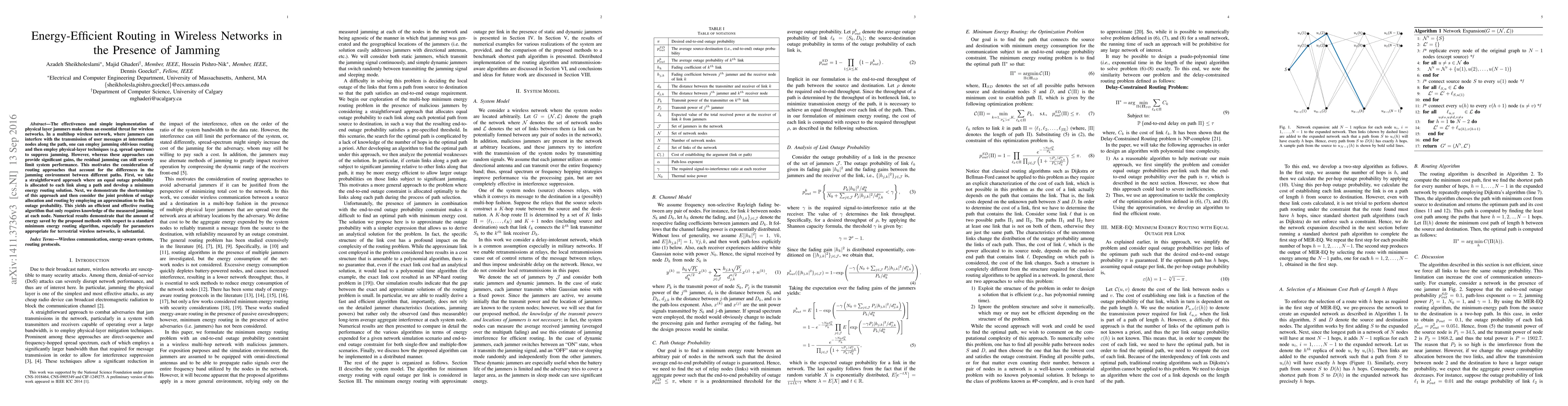 This paper proposes energy-efficient routing strategies in wireless networks facing jamming interference, developing a minimum energy routing solution based on equal outage probability allocation. It then introduces an improved algorithm that jointly considers outage allocation and routing, significantly reducing energy consumption compared to standard methods.
