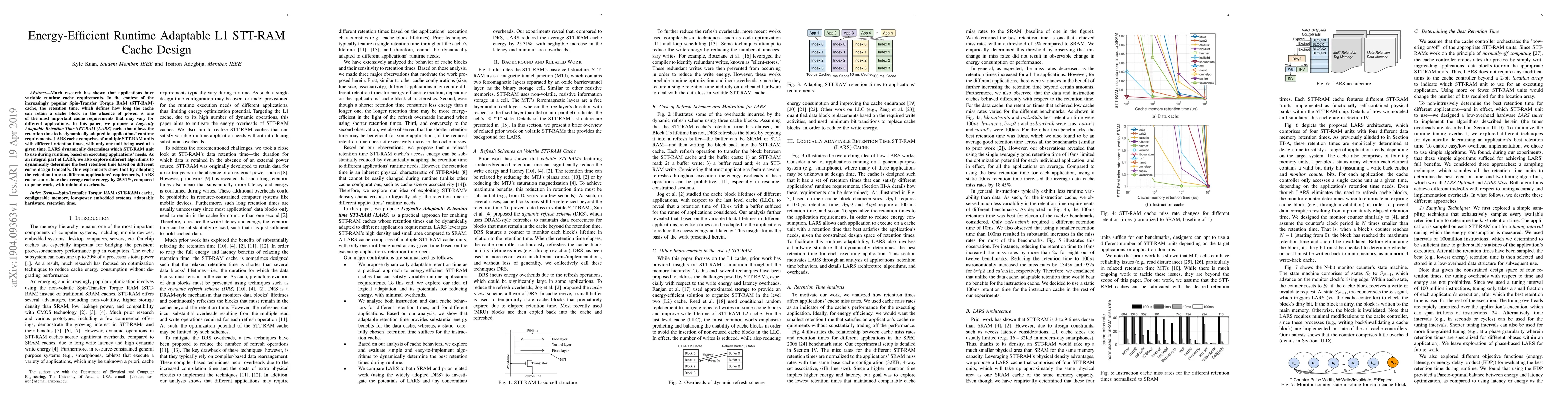 Much research has shown that applications have variable runtime cache requirements. In the context of the increasingly popular Spin-Transfer Torque RAM (STT-RAM) cache, the retention time, which defines how long the cache can retain a cache block in the absence of power, is one of the most important cache requirements that may vary for different applications. In this paper, we propose a Logically Adaptable Retention Time STT-RAM (LARS) cache that allows the retention time to be dynamically adapted to applications' runtime requirements. LARS cache comprises of multiple STT-RAM units with different retention times, with only one unit being used at a given time. LARS dynamically determines which STT-RAM unit to use during runtime, based on executing applications' needs. As an integral part of LARS, we also explore different algorithms to dynamically determine the best retention time based on different cache design tradeoffs. Our experiments show that by adapting the retention time to different applications' requirements, LARS cache can reduce the average cache energy by 25.31%, compared to prior work, with minimal overheads.