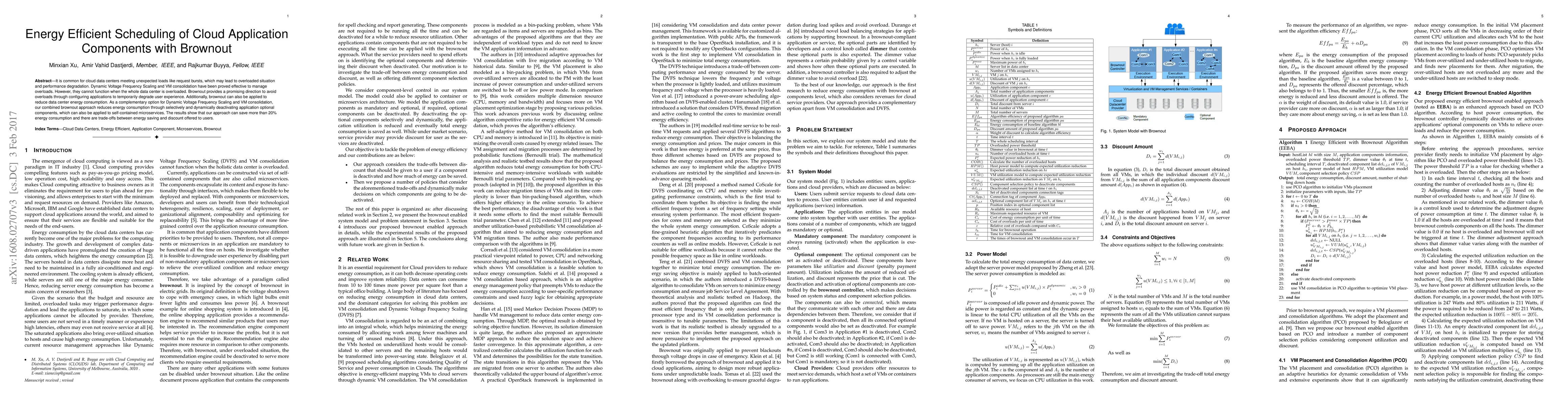 This paper proposes a combined brownout approach to manage overloads in cloud data centers by dynamically deactivating application components to reduce energy consumption. The method complements Dynamic Voltage Frequency Scaling and VM consolidation, achieving over 20% energy savings while balancing trade-offs between energy efficiency and user experience degradation.