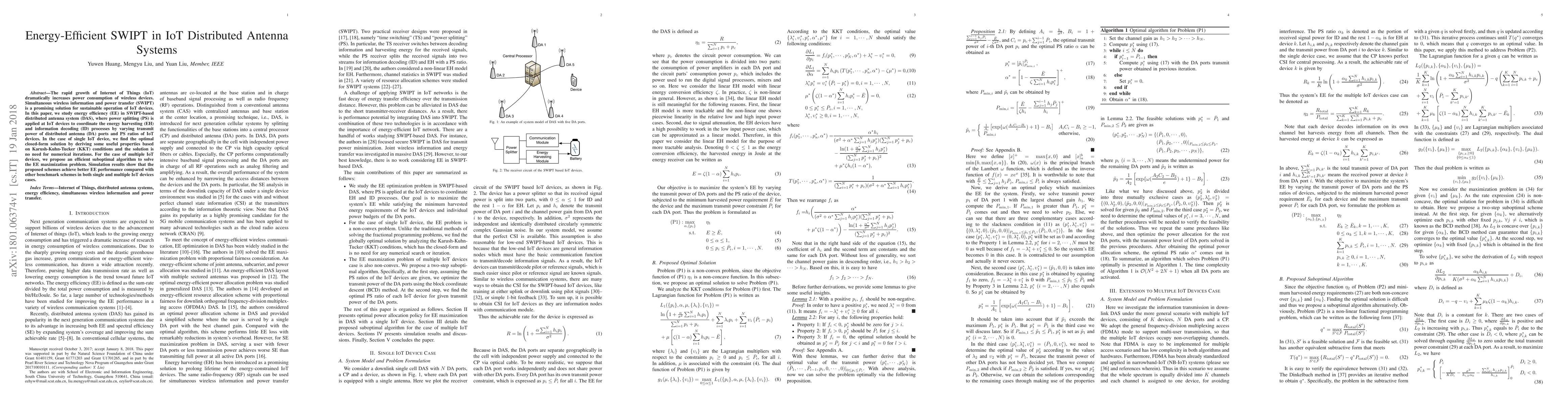 This paper investigates energy efficiency in SWIPT-based distributed antenna systems for IoT, optimizing the power splitting ratio and transmit power for both single and multiple IoT devices. The proposed optimal solution for single devices and efficient suboptimal algorithm for multiple devices achieve superior energy efficiency compared to benchmark methods.