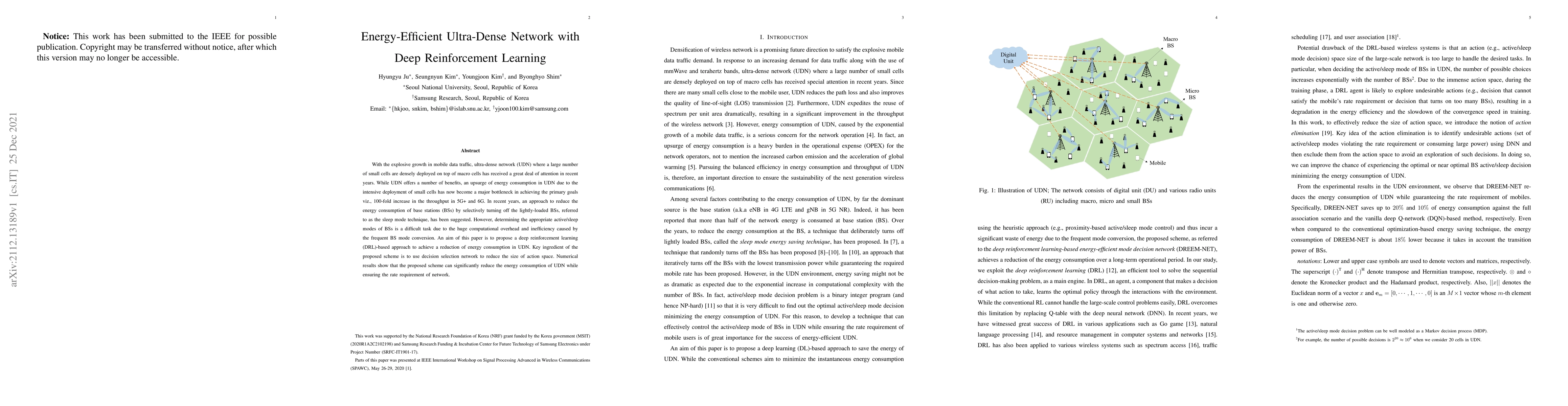 This paper proposes a deep reinforcement learning (DRL) approach to reduce energy consumption in ultra-dense networks by selectively activating or deactivating base stations. The DRL method effectively manages the action space, achieving significant energy savings while maintaining network throughput requirements.