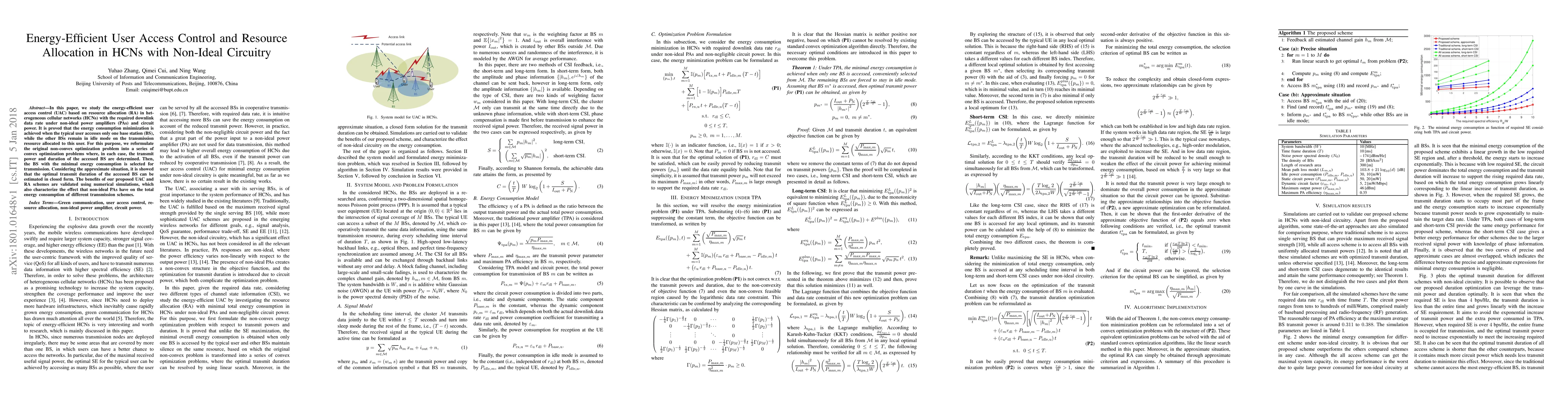 This paper proposes an energy-efficient user access control and resource allocation scheme in heterogeneous cellular networks, focusing on minimizing energy consumption under non-ideal power amplifiers and circuit power. The optimal strategy involves selecting a single base station for user access while keeping others idle, validated through convex optimization and numerical simulations.