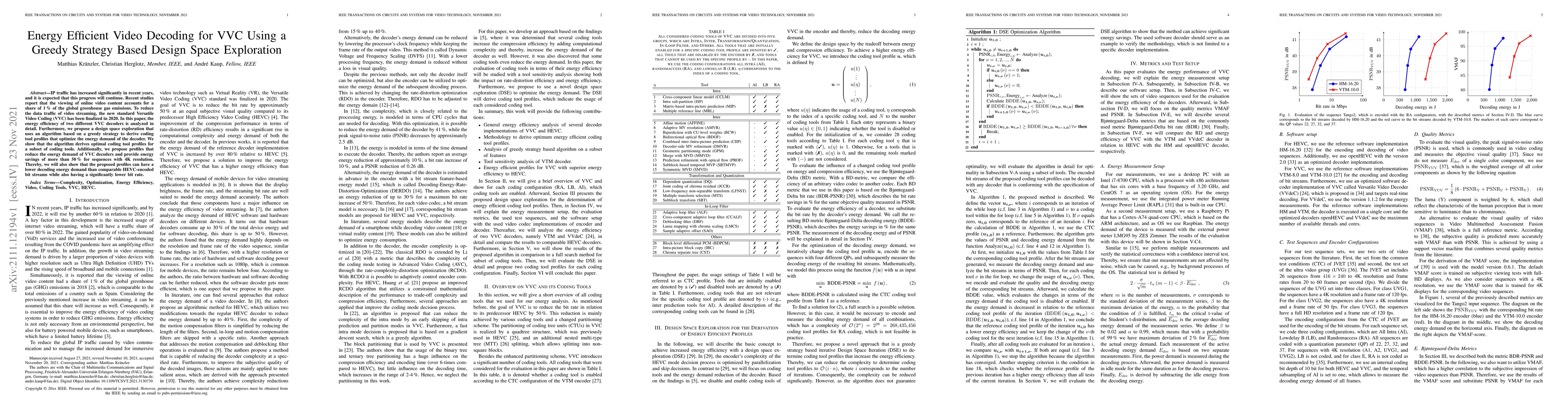 This paper analyzes the energy efficiency of VVC decoders and proposes a greedy strategy for design space exploration to optimize decoder energy demand. The proposed method achieves over 50% energy savings for 4K sequences, outperforming comparable HEVC-encoded streams with lower bit rates.