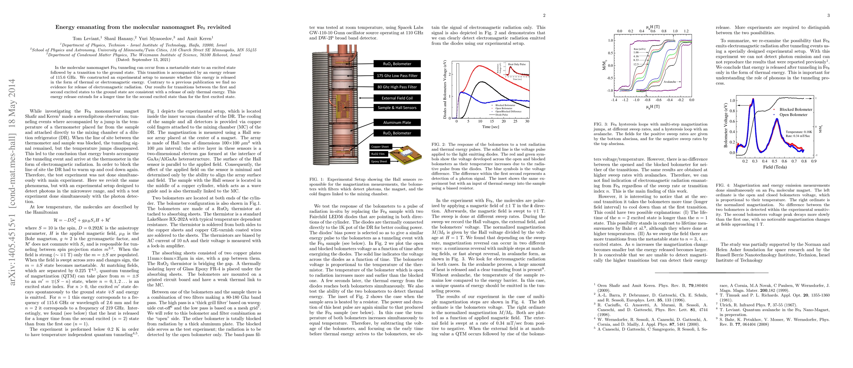 Researchers studied energy release in molecular nanomagnet Fe$_{8}$ and found no evidence of electromagnetic radiation release during transitions between states, but did detect thermal energy release instead.
