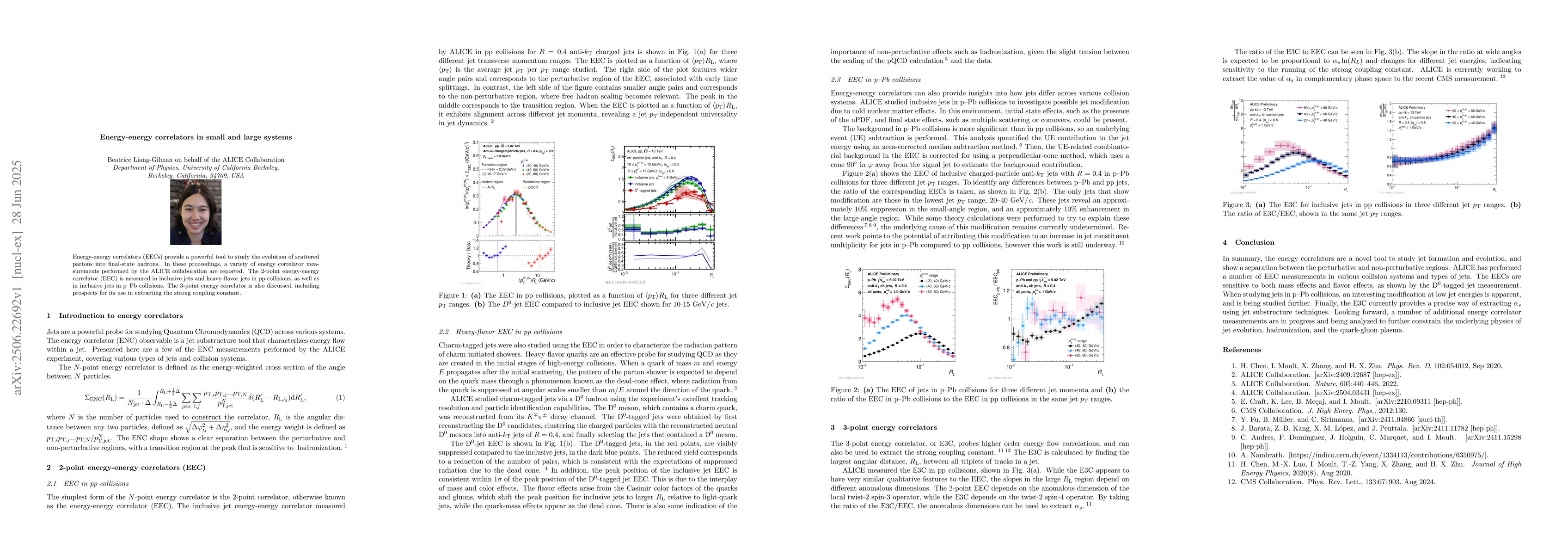 Energy-energy correlators (EECs) provide a powerful tool to study the evolution of scattered partons into final-state hadrons. In these proceedings, a variety of energy correlator measurements performed by the ALICE collaboration are reported. The 2-point energy-energy correlator (EEC) is measured in inclusive jets and heavy-flavor jets in pp collisions, as well as in inclusive jets in p-Pb collisions. The 3-point energy correlator is also discussed, including prospects for its use in extracting the strong coupling constant.
