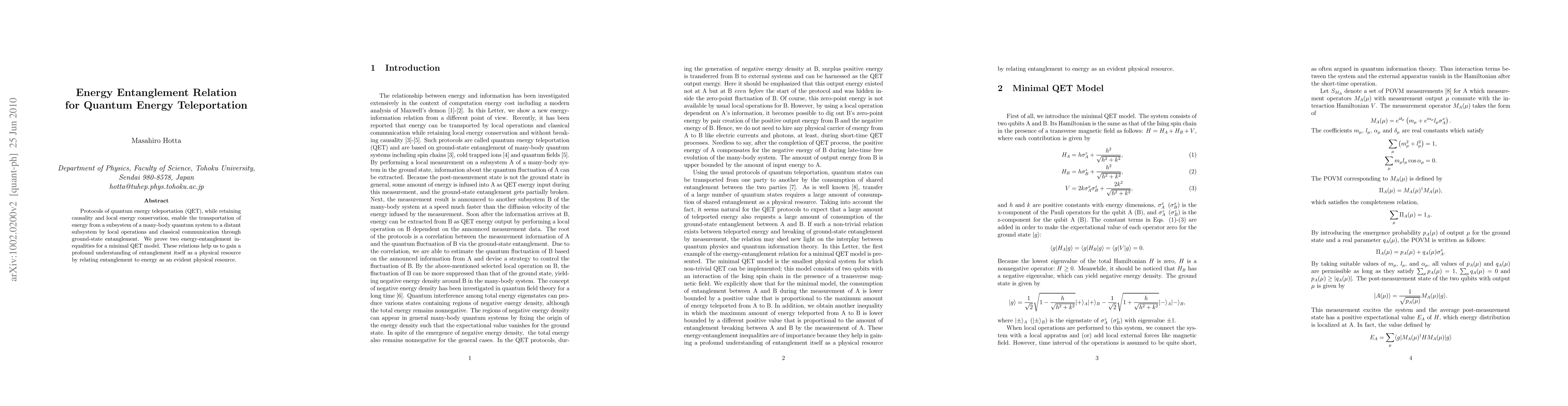 This paper explores quantum energy teleportation protocols that maintain causality and local energy conservation, demonstrating the transportation of energy via entanglement. It establishes two energy-entanglement inequalities for a minimal model, deepening the understanding of entanglement as a resource linked to energy.