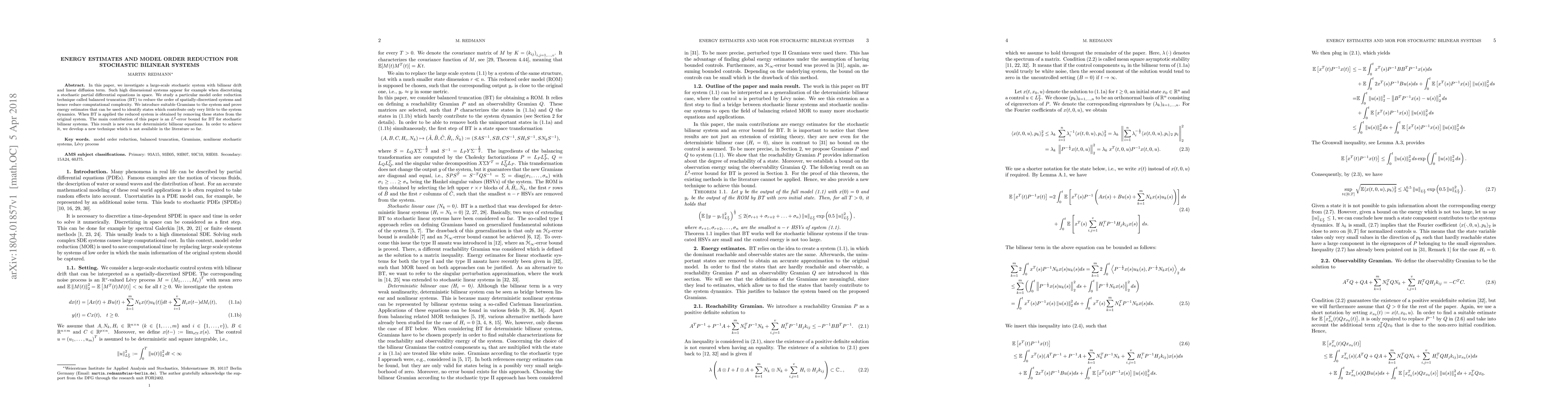 Researchers develop a new method to reduce computational complexity for large-scale stochastic systems with bilinear drift and diffusion terms. They achieve this using the balanced truncation technique and provide an L2-error bound for this approach in stochastic bilinear systems.