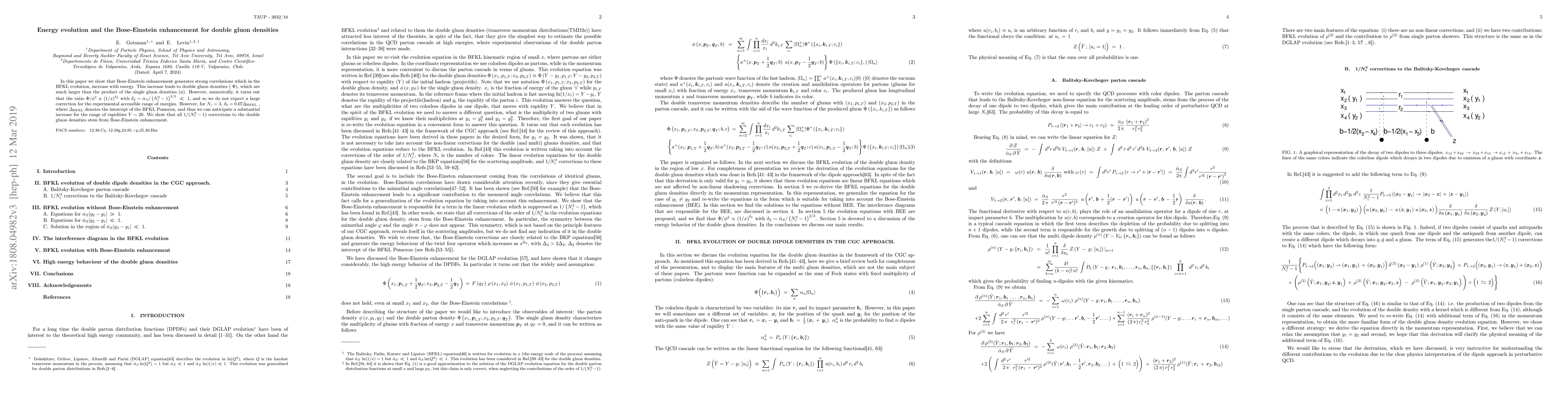In this paper we found that the Bose-Einstein enhancement generates the strong correlations, which increase with energy in the BFKL evolution. This increase leads to the double parton densities ( $\Phi$), that are much larger than the product of the single parton densities ($\phi$). However, numerically, it turns out that the ratio $\Phi/\phi^2 \propto \Lb 1/x\Rb^{\delta_2}$ with $\delta_2 \sim \bas/\Lb N^2_c - 1\Rb^{2/3}\,\,\ll\,\,1$ and we do not expect a large correction for the accessible range of energies. However, for $N_c=3$ it tuns out that $\delta_2 = 0.07 \Delta_{\rm BFKL}$ where $\Delta_{\rm BFKL}$ is the intercept of the BFKL Pomeron and we can anticipate an substantial increase for the range of rapidities $Y \sim 20$.It is shown that all $1/(N^2_c -1)$ corrections to the double parton densities stem from the Bose-Einstein enhancement.
