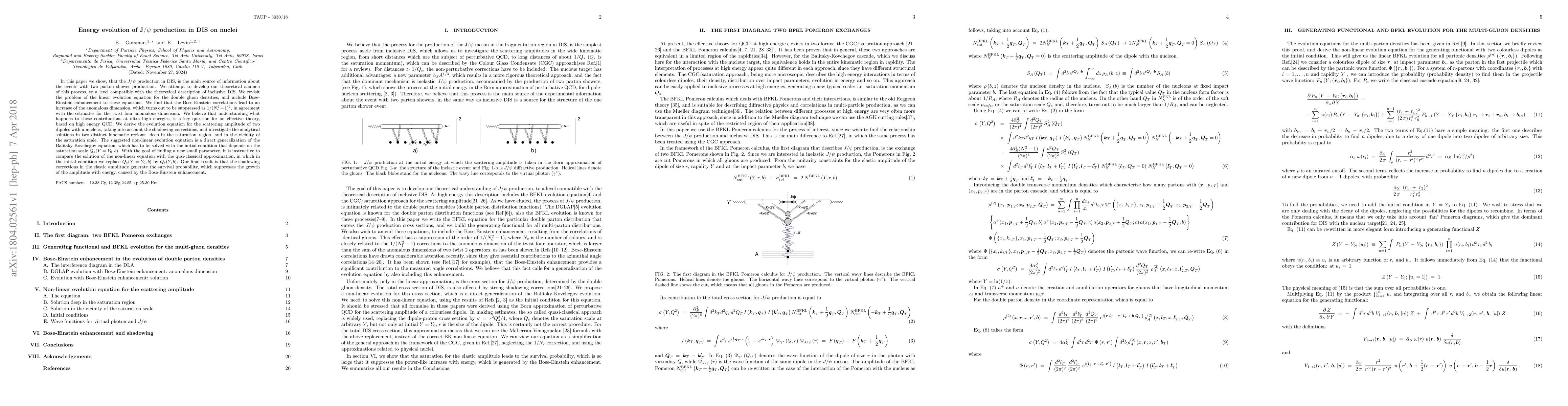 In this paper we show, that the $J/\psi$ production in DIS, is the main source of information about the events with two parton shower production. We attempt to develop our theoretical acumen of this process, to a level compatible with the theoretical description of inclusive DIS. We revisit the problem of the linear evolution equation for the double gluon densities, and include Bose-Einstein enhancement to these equations. We find that the Bose-Einstein correlations lead to an increase of the anomalous dimension, which turns out to be suppressed as $1/(N^2_c -1)^2$, in agreement with the estimates for the twist four anomalous dimension. We believe that understanding what happens to these contributions at ultra high energies, is a key question for an effective theory, based on high energy QCD. We derive the evolution equation for the scattering amplitude of two dipoles with a nucleus, taking into account the shadowing corrections, and investigate the analytical solutions in two distinct kinematic regions: deep in the saturation region, and in the vicinity of the saturation scale. The suggested non-linear evolution equation is a direct generalization of the Balitsky-Kovchegov equation, which has to be solved with the initial condition that depends on the saturation scale $Q_s(Y=Y_0,b)$. With the goal of finding a new small parameter, it is instructive to compare the solution of the non-linear equation with the qusi-classical approximation, in which in the initial condition we replace $Q_s(Y=Y_0,b)$ by $Q_s(Y,b)$. Our final result is that the shadowing corrections in the elastic amplitude generate the survival probability, which suppresses the growth of the amplitude with energy, caused by the Bose-Einstein enhancement.