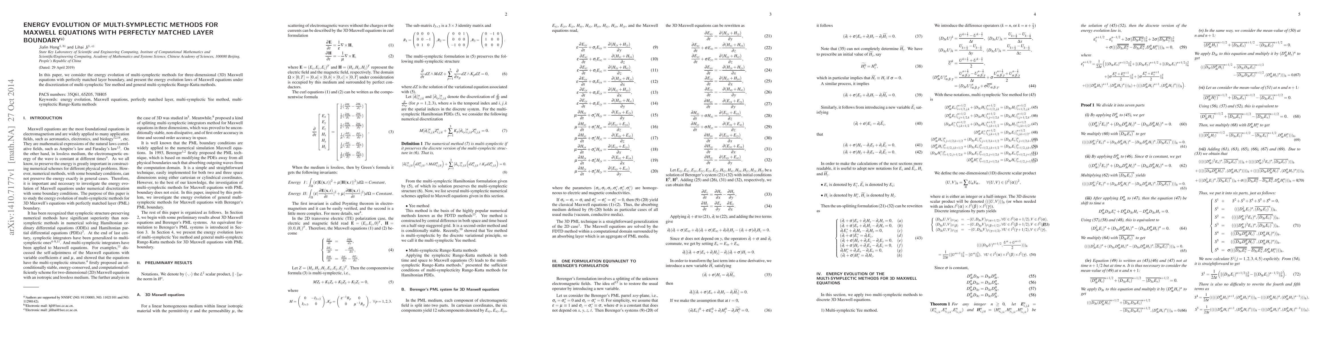 This paper investigates the energy evolution of multi-symplectic methods for solving Maxwell equations with a perfectly matched layer boundary, providing key laws for energy conservation in discretized Yee and Runge-Kutta methods.