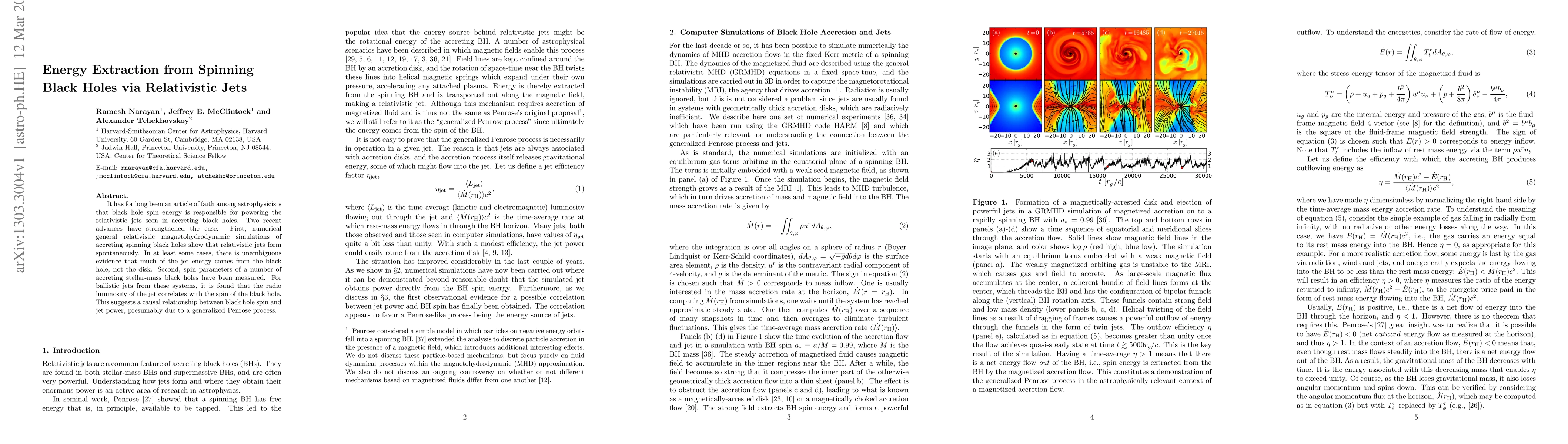 This paper demonstrates that black hole spin energy can spontaneously power relativistic jets, as shown by recent numerical simulations. Additionally, a correlation between the spin of stellar-mass black holes and the radio luminosity of their jets supports a causal link, likely through a generalized Penrose process.