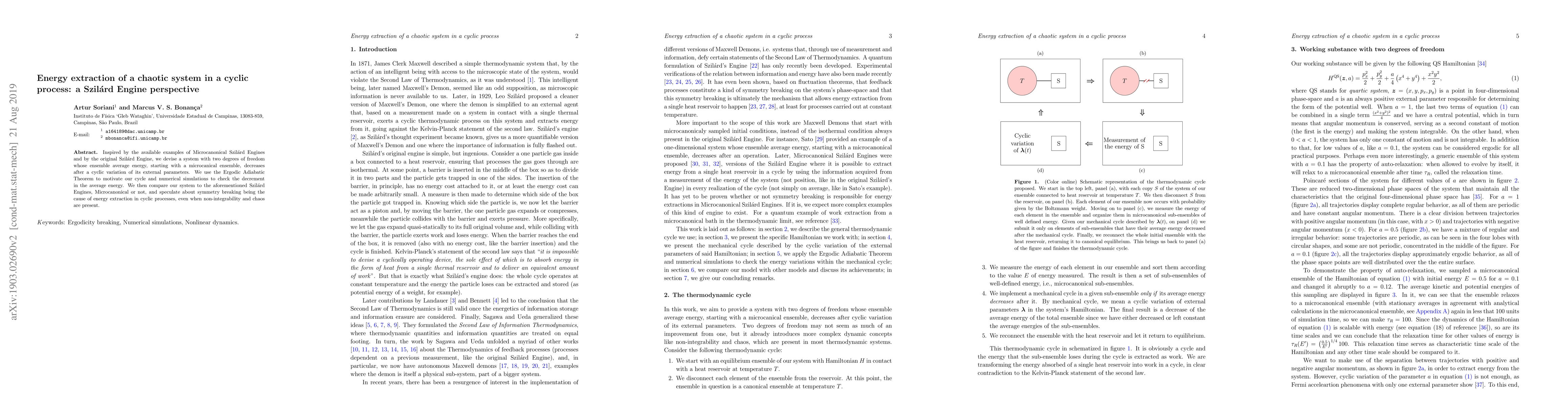 This paper explores a chaotic system modeled as a cyclic Szilárd Engine, demonstrating that its ensemble average energy decreases after a cyclic variation of external parameters. The Ergodic Adiabatic Theorem and numerical simulations support the findings, and the study speculates on symmetry breaking as a potential mechanism for energy extraction in chaotic systems.