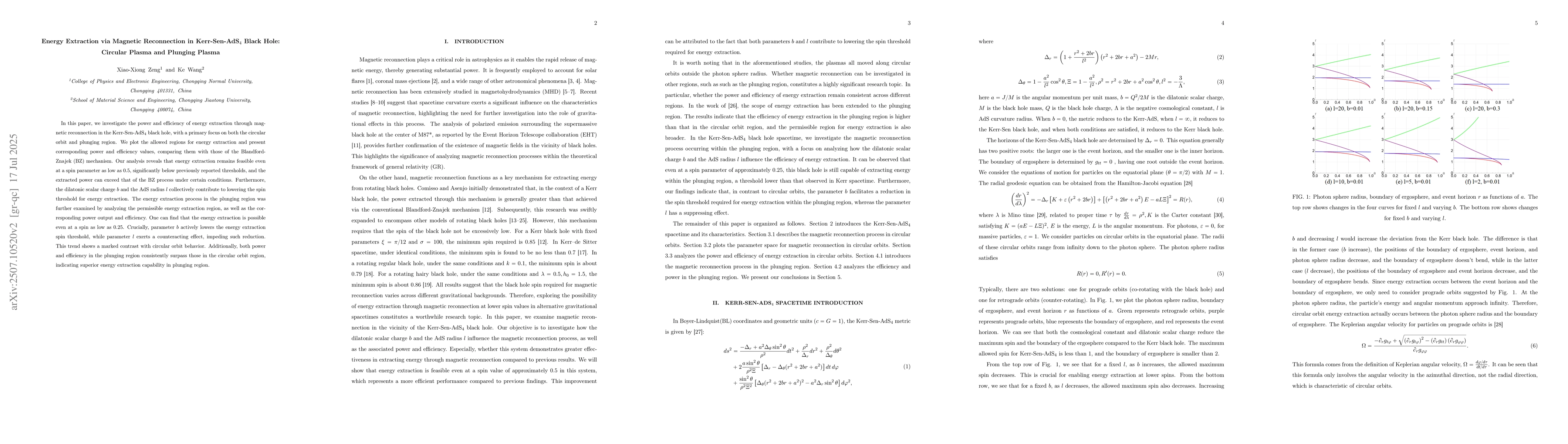 In this paper, we investigate the power and efficiency of energy extraction through magnetic reconnection in the Kerr-Sen-AdS$_{4}$ black hole, with a primary focus on both the circular orbit and plunging region. We plot the allowed regions for energy extraction and present corresponding power and efficiency values, comparing them with those of the Blandford-Znajek (BZ) mechanism. Our analysis reveals that energy extraction remains feasible even at a spin parameter as low as 0.5, significantly below previously reported thresholds, and the extracted power can exceed that of the BZ process under certain conditions. Furthermore, the dilatonic scalar charge $b$ and the AdS radius $l$ collectively contribute to lowering the spin threshold for energy extraction. The energy extraction process in the plunging region was further examined by analyzing the permissible energy extraction region, as well as the corresponding power output and efficiency. One can find that the energy extraction is possible even at a spin as low as 0.25. Crucially, parameter $b$ actively lowers the energy extraction spin threshold, while parameter $l$ exerts a counteracting effect, impeding such reduction. This trend shows a marked contrast with circular orbit behavior. Additionally, both power and efficiency in the plunging region consistently surpass those in the circular orbit region, indicating superior energy extraction capability in plunging region.