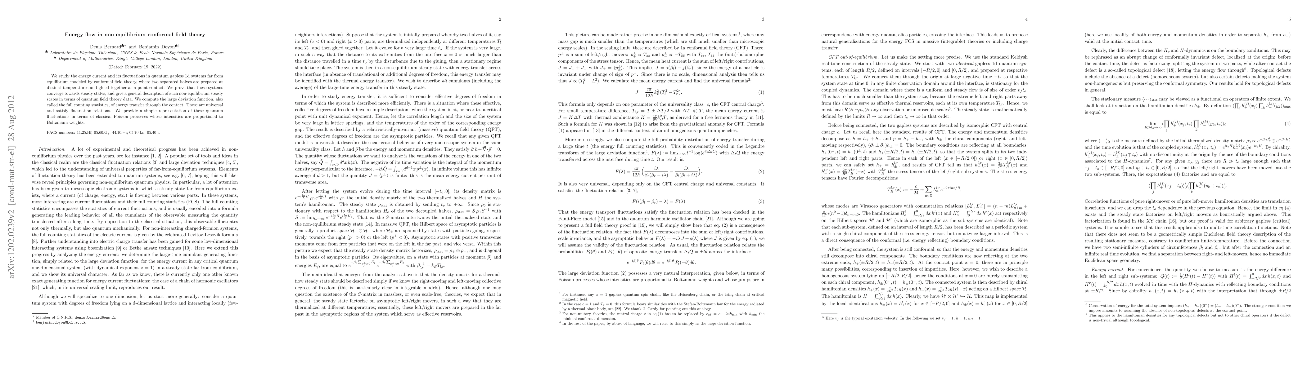 This paper investigates energy flow and fluctuations in non-equilibrium 1d conformal field theories, demonstrating convergence to steady states and providing universal full counting statistics for energy transfer. It connects quantum fluctuations to classical Poisson processes via Boltzmann weights.