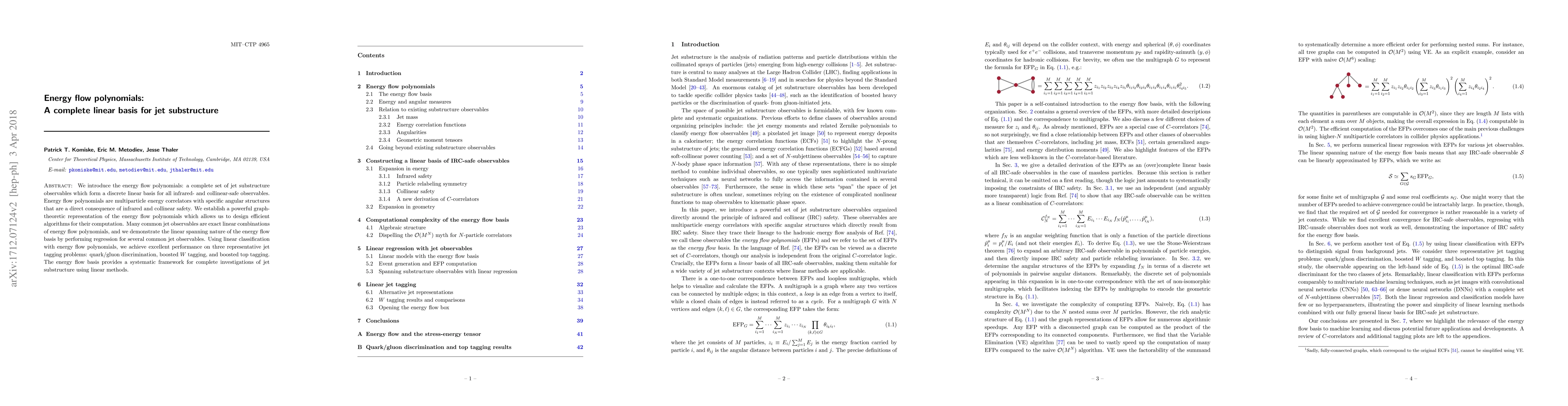 This paper introduces energy flow polynomials as a complete linear basis for jet substructure observables, demonstrating their utility in representing infrared- and collinear-safe observables. The authors show that many common jet observables can be expressed as linear combinations of these polynomials, achieving high performance in jet tagging tasks.