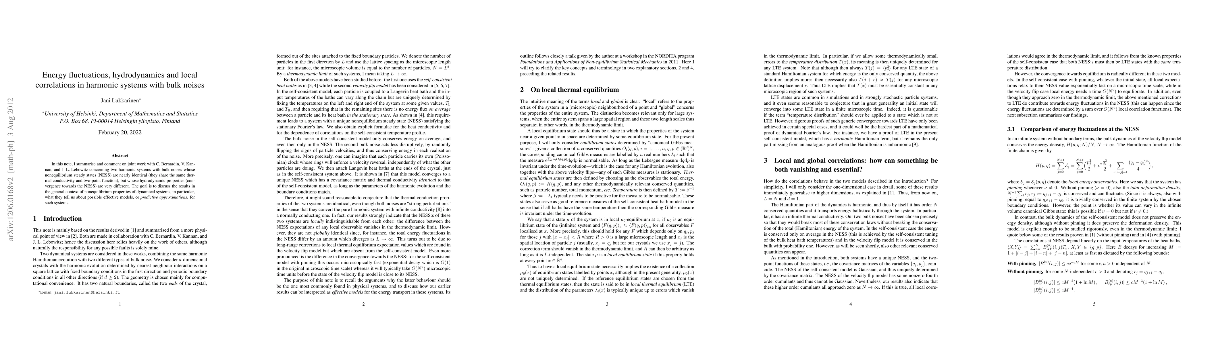 Researchers studied two harmonic systems with bulk noises that have nearly identical thermal conductivity but different hydrodynamic properties, highlighting the importance of considering local correlations in understanding nonequilibrium steady states.
